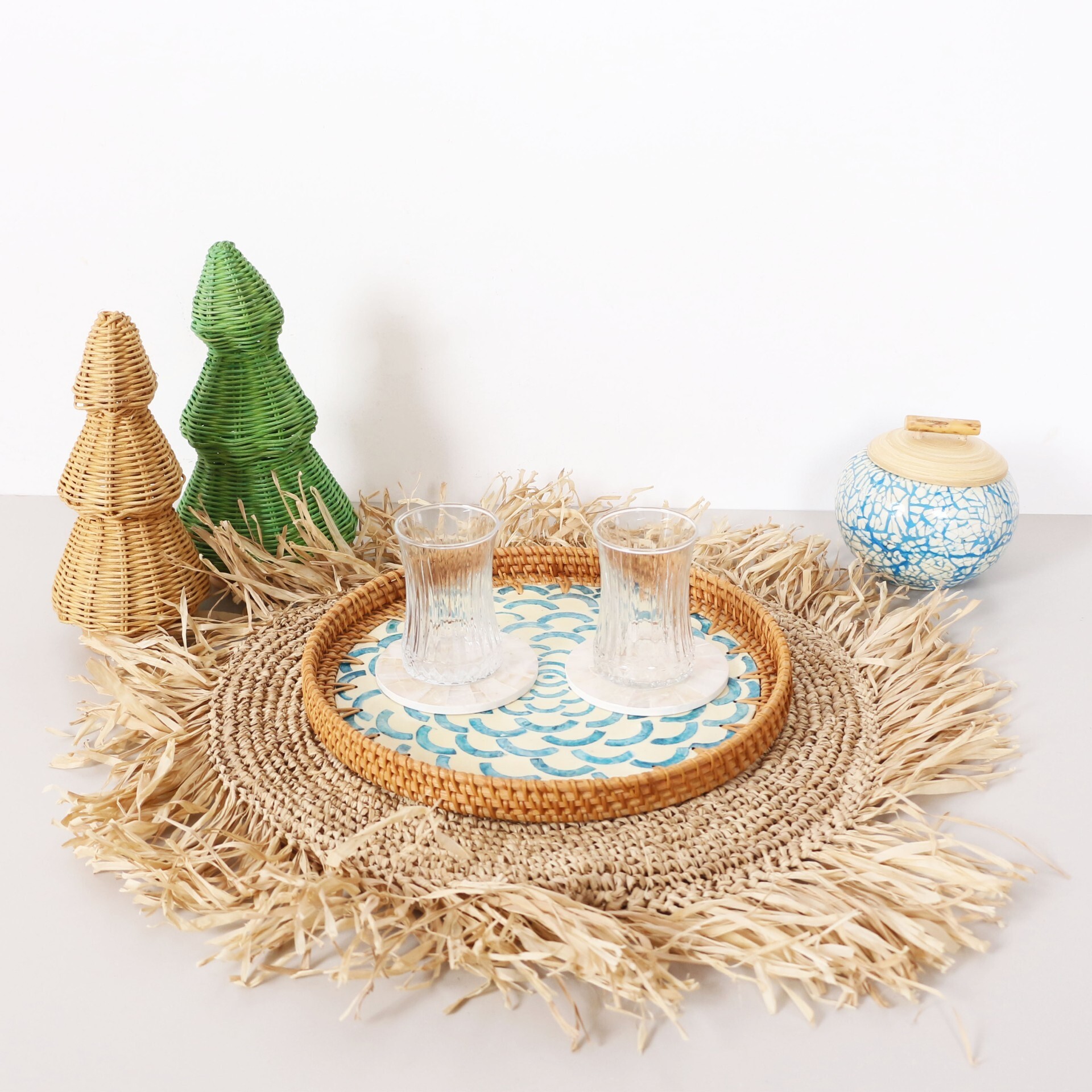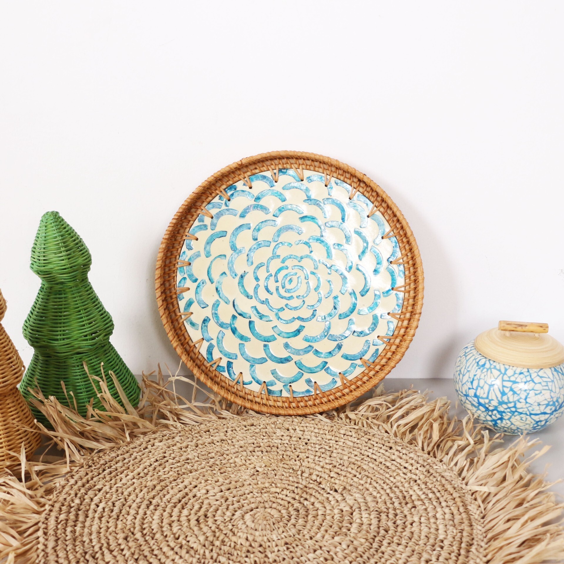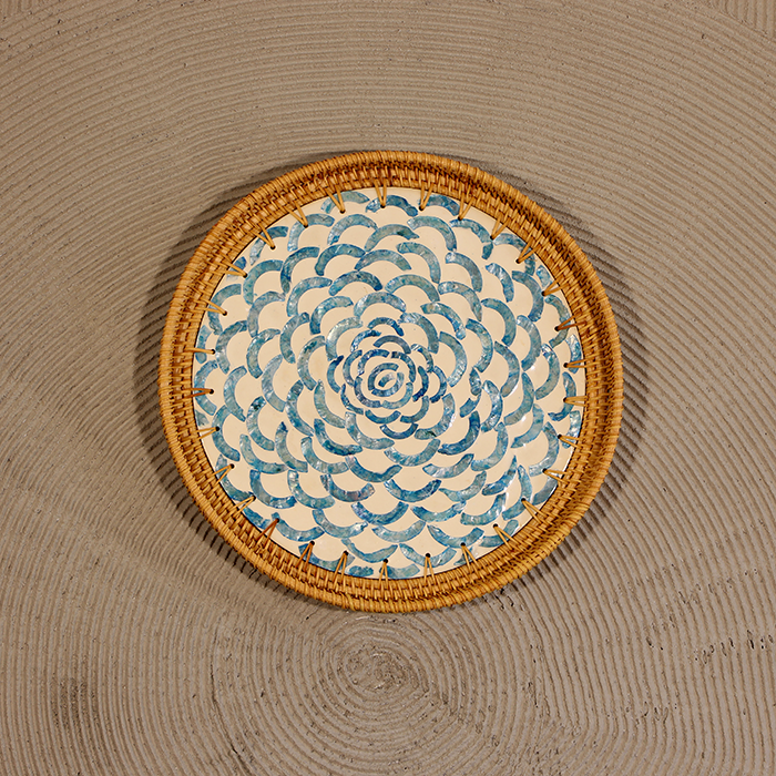 - Rattan ve sedefli mozaikten el işiliği ile üretilmiştir.