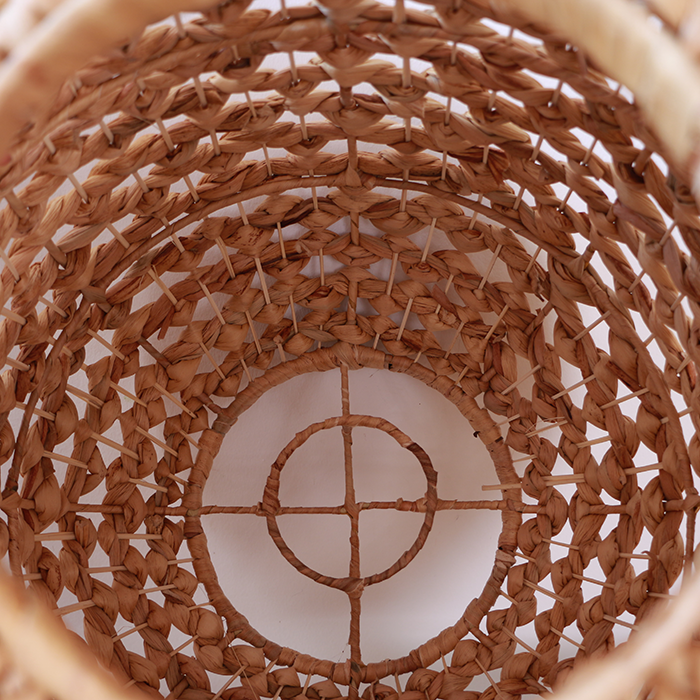 Ürünümüz su sümbülünden galvaniz kafes üzerine el işçiliği ile örülmüştür.