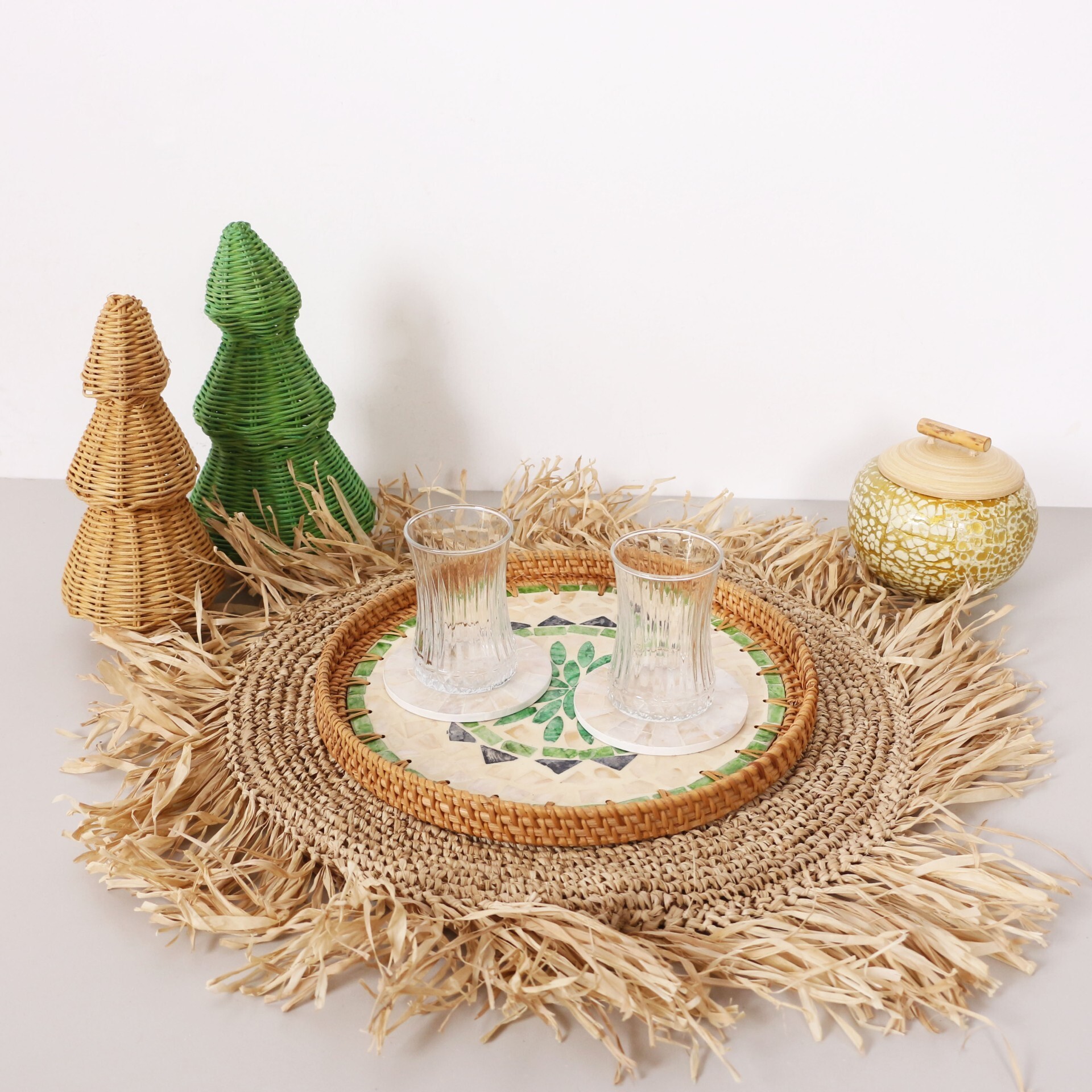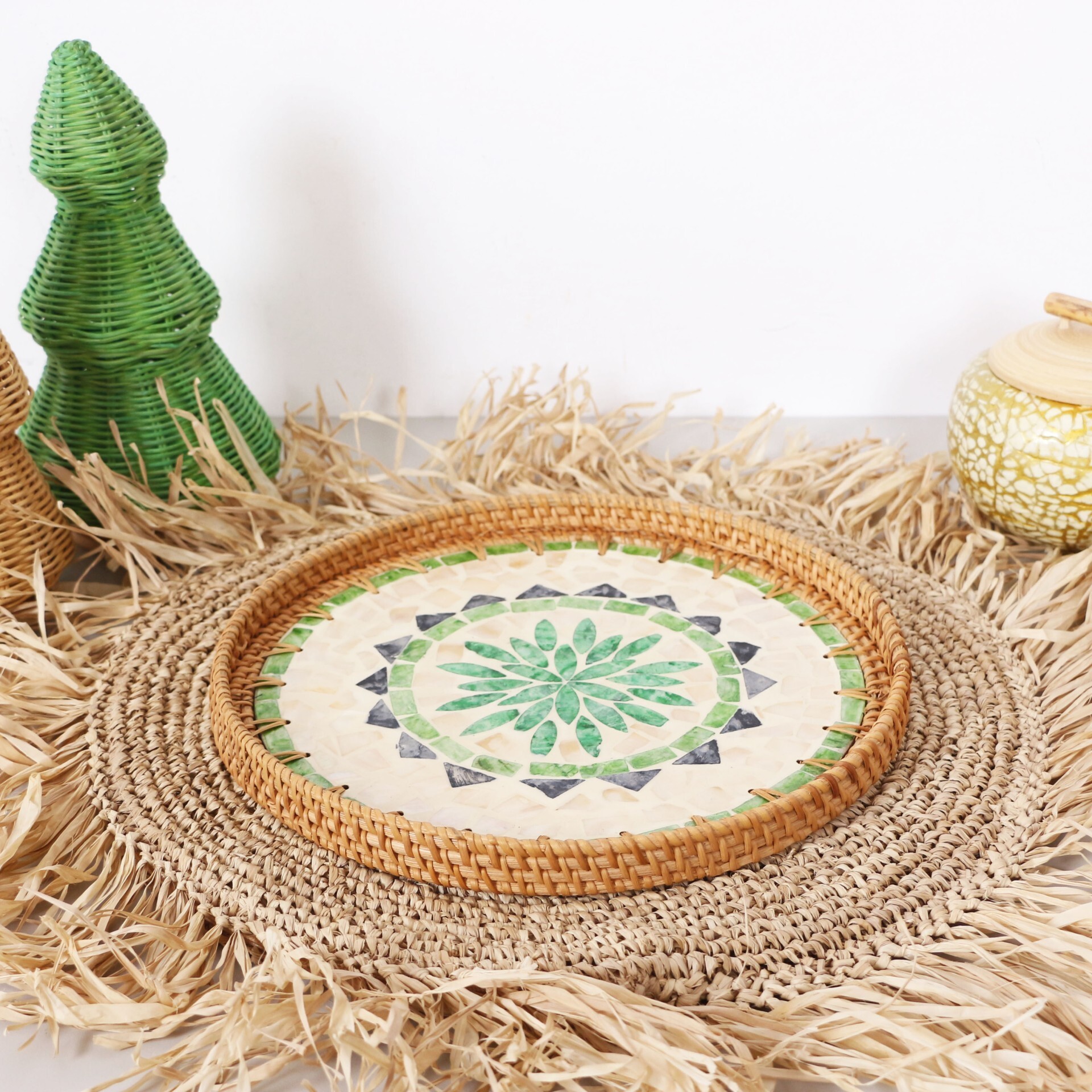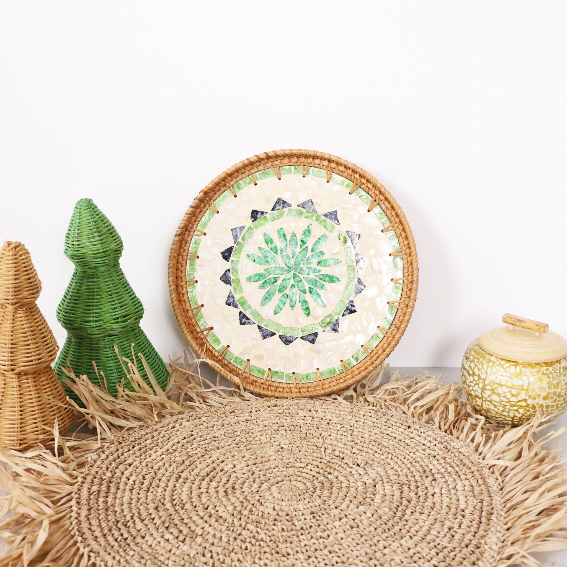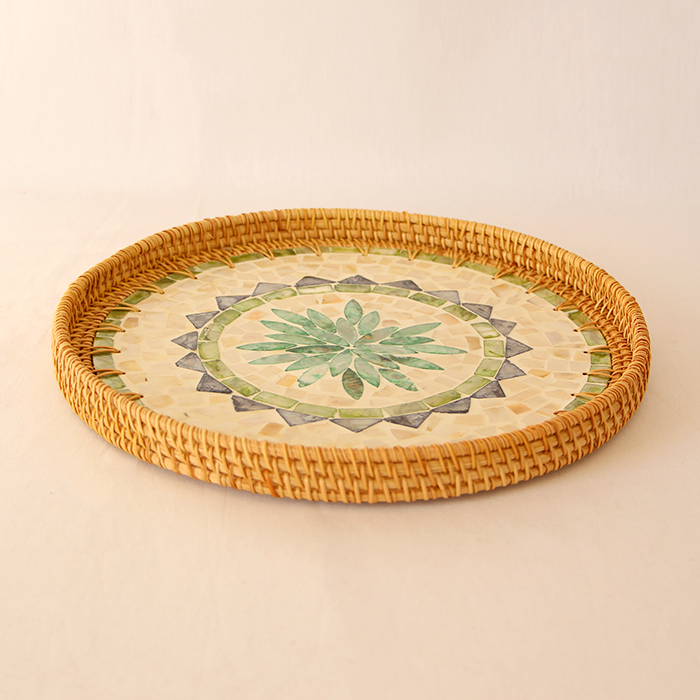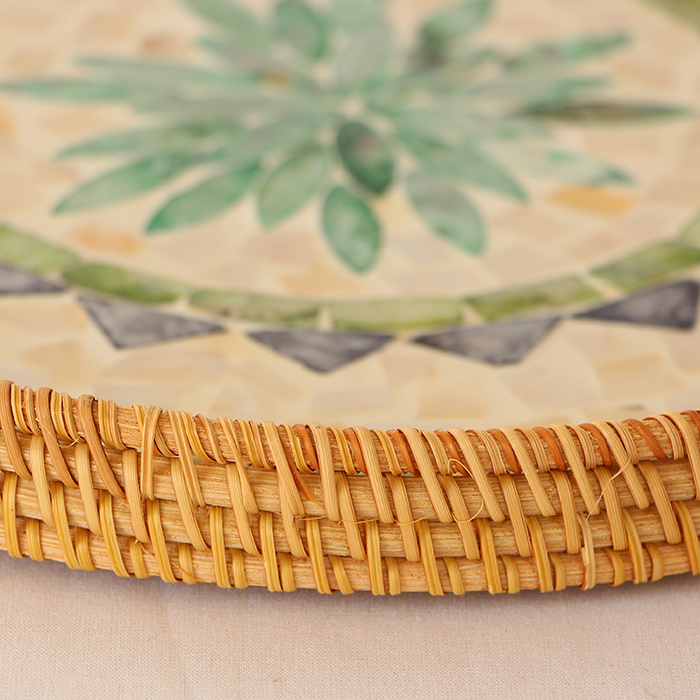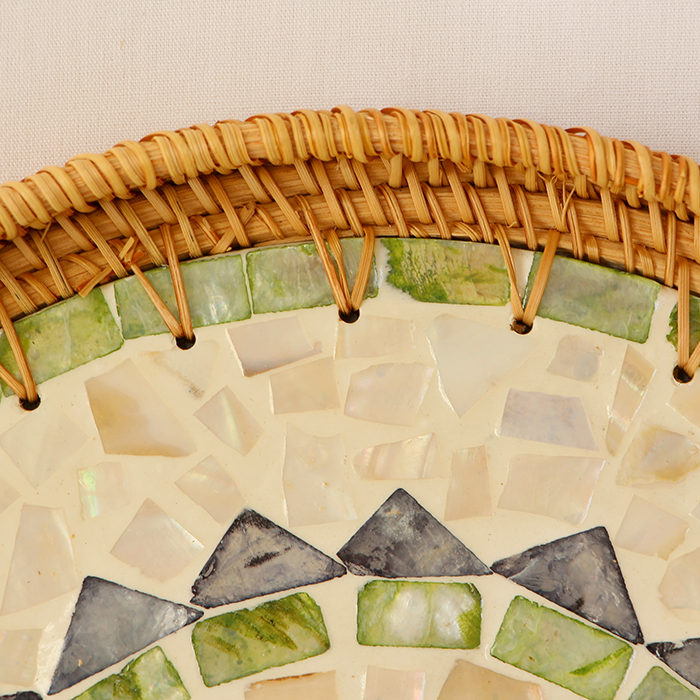 - Rattan ve sedefli mozaikten el işiliği ile üretilmiştir.