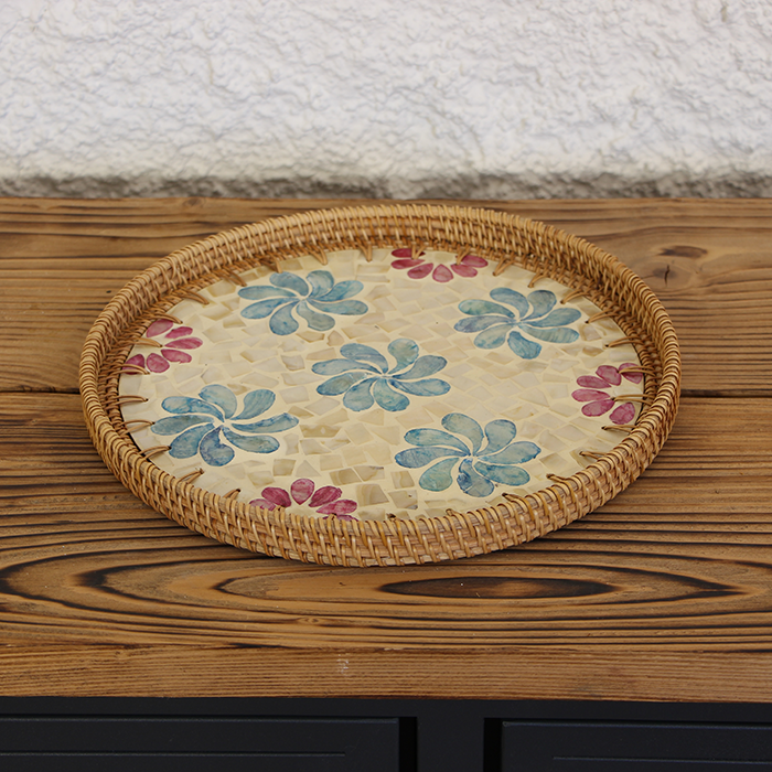 - Rattan ve sedefli mozaikten el işiliği ile üretilmiştir.