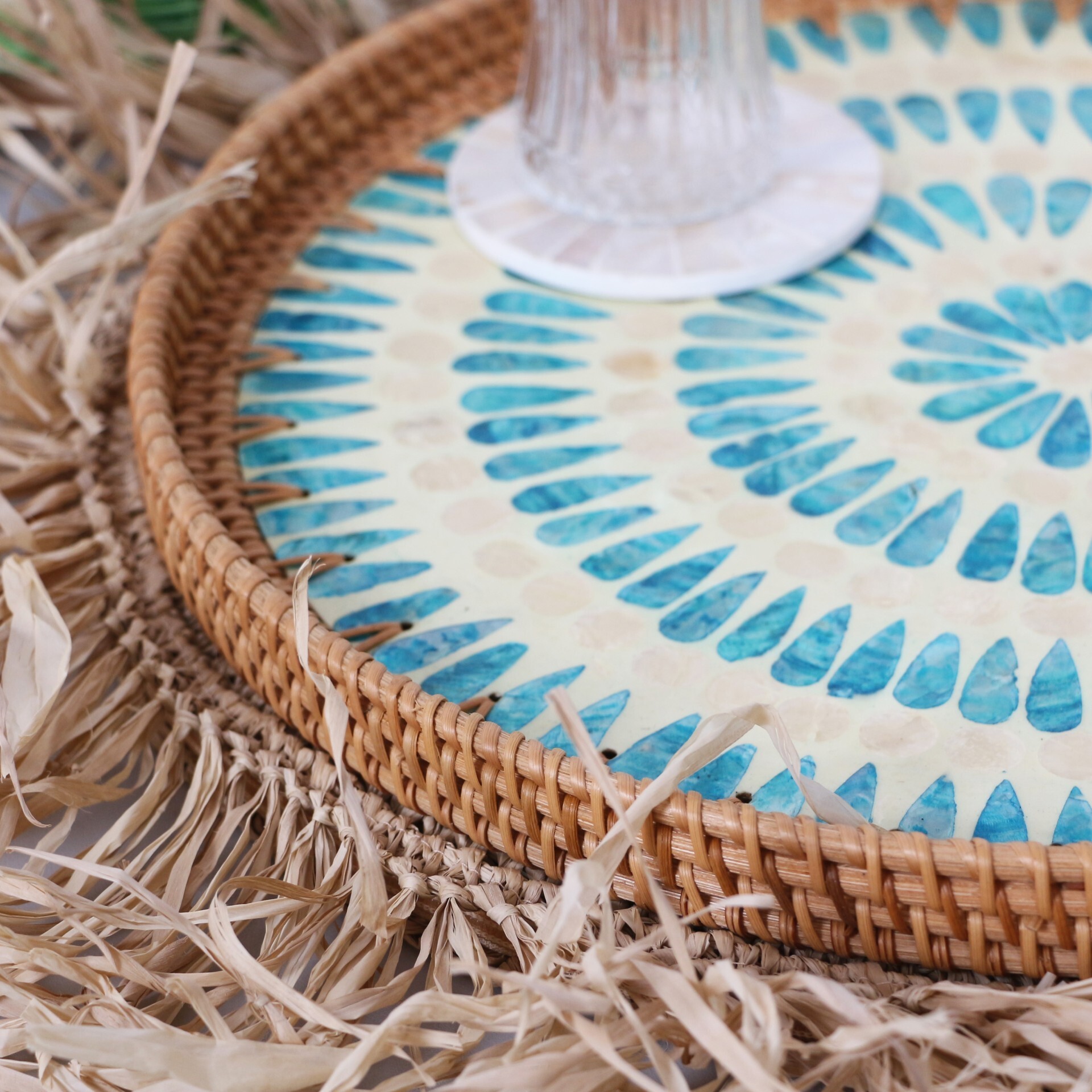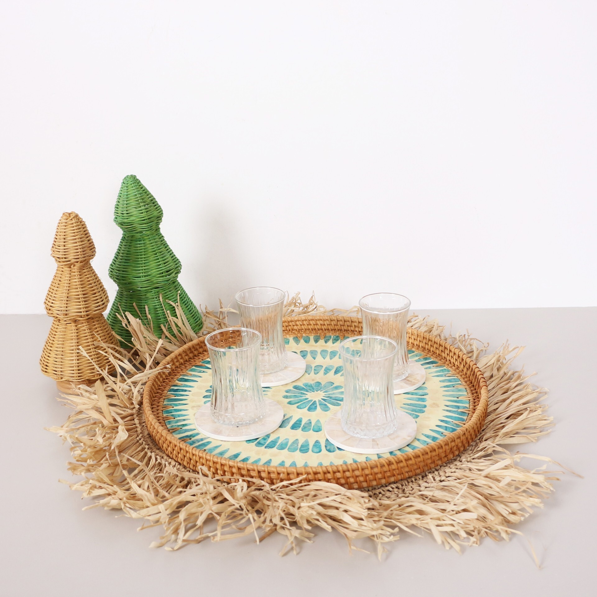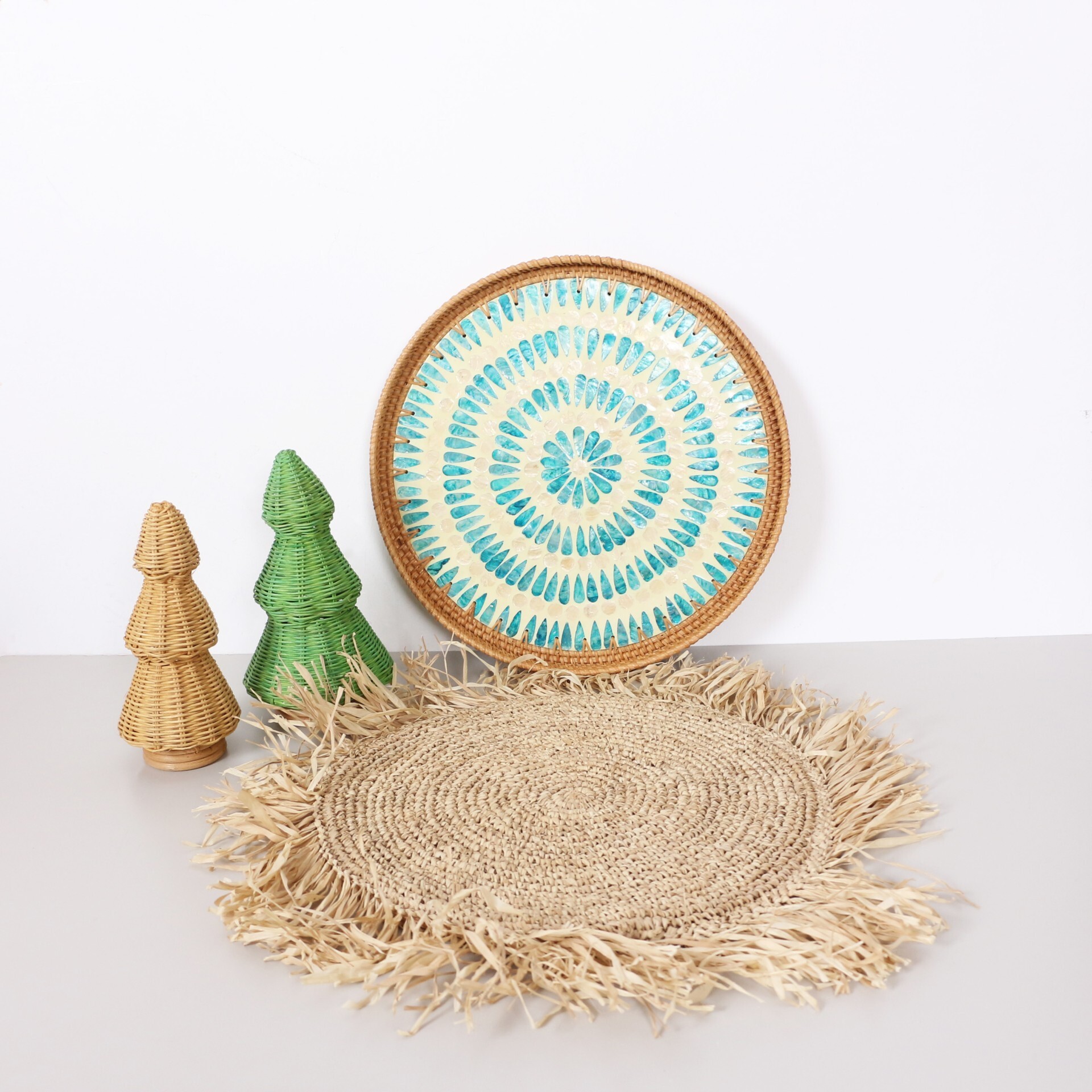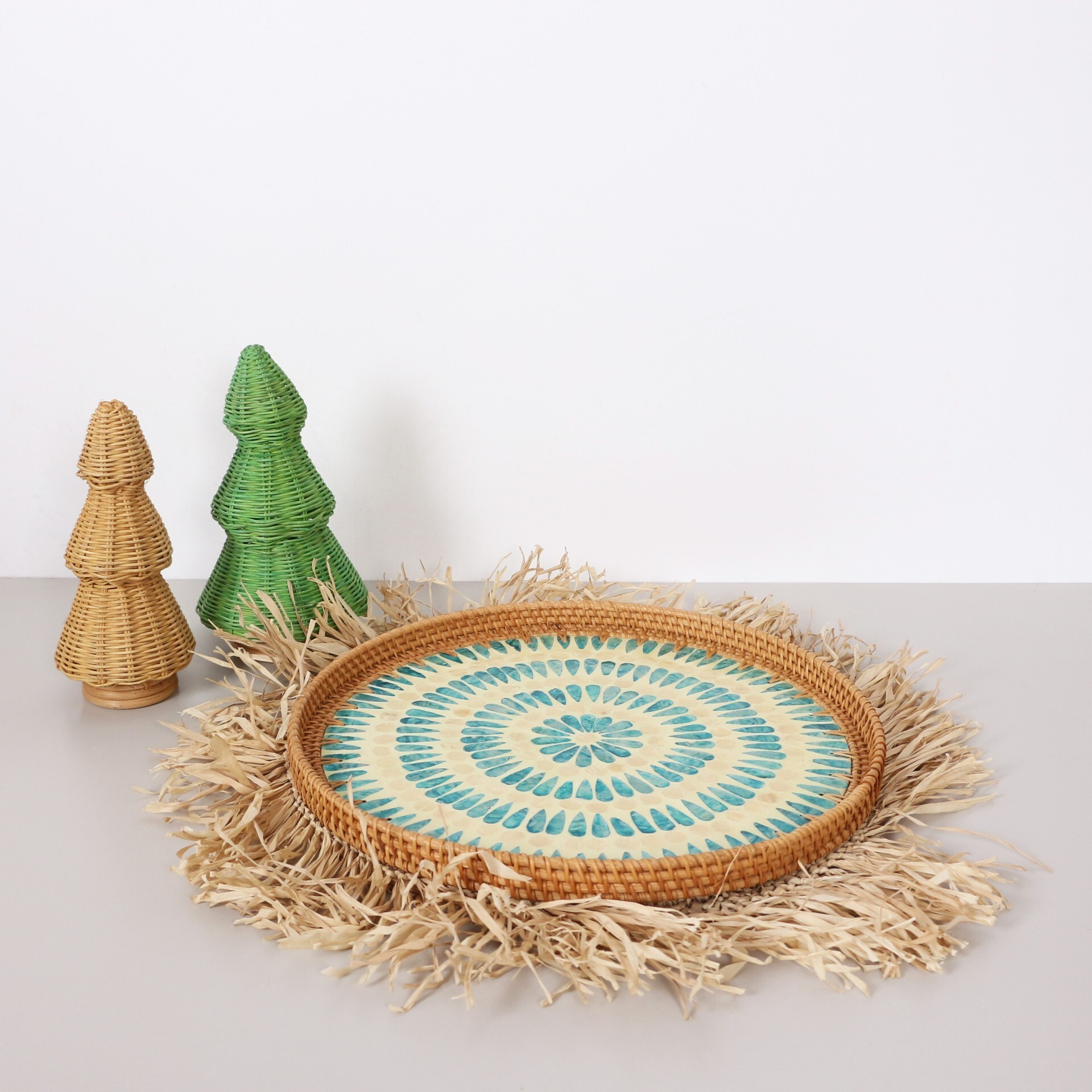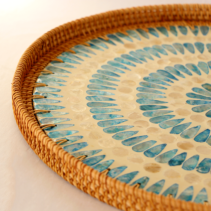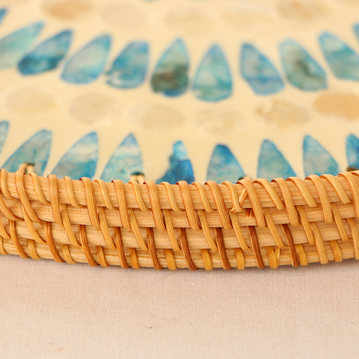 - Rattan ve sedefli mozaikten el işiliği ile üretilmiştir.