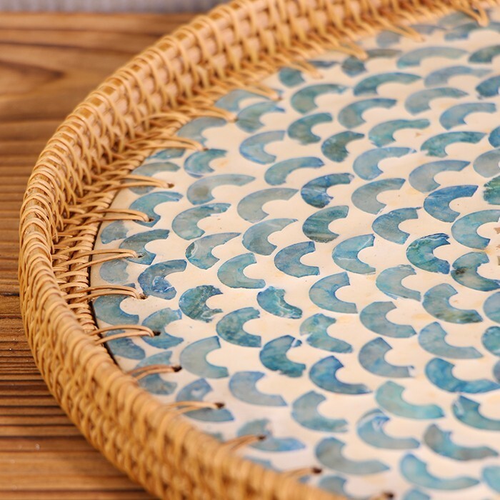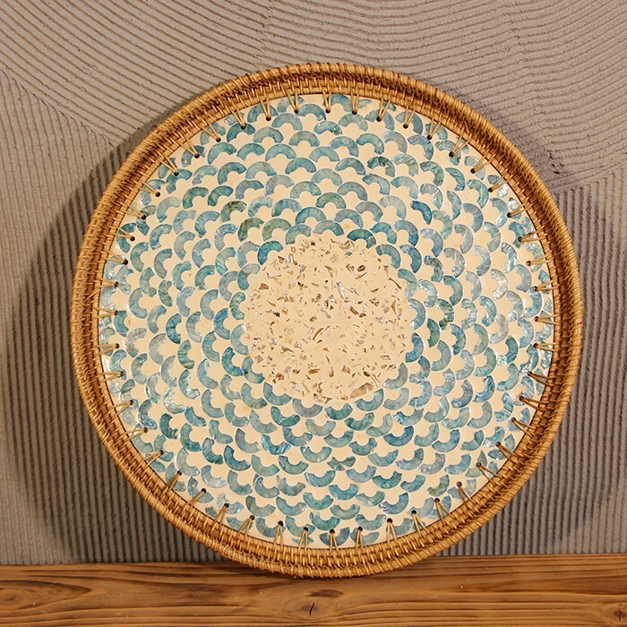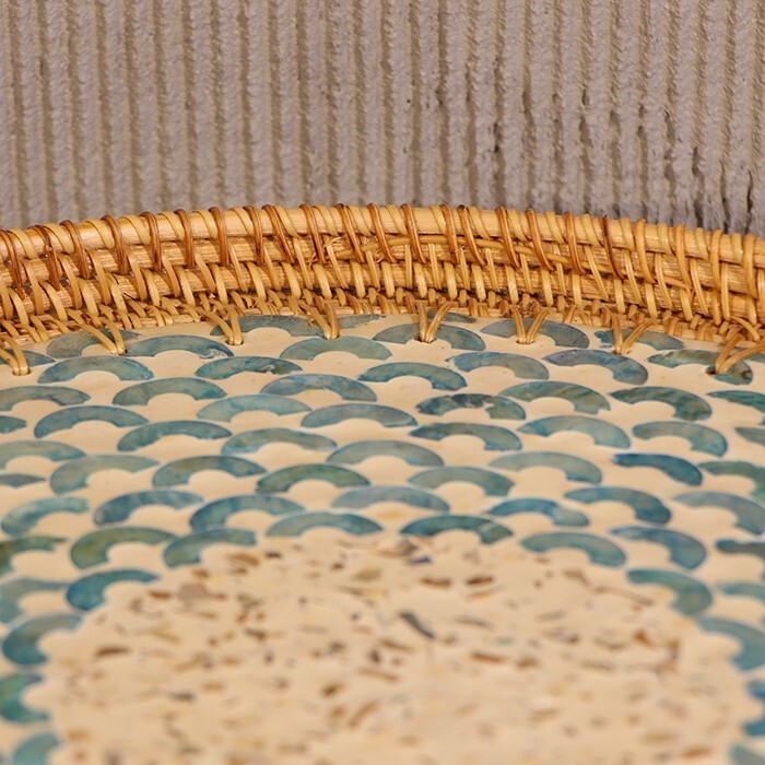 - Rattan ve sedefli mozaikten el işiliği ile üretilmiştir.