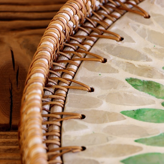 - Rattan ve sedefli mozaikten el işiliği ile üretilmiştir.