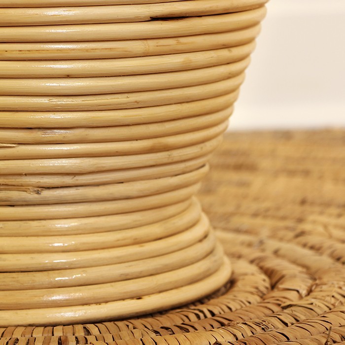 Kendi ekolojik ortamlarında yetişen bambu ve rattan bitkisinin sanatkar köy kadınları tarafından çeşitli işlemlerle dilimlenmesi,temizlenmesi el ile şekillendirilerek bambu gövde oluşturulması ve üzerine Doğal Rattan sarılması ile bu ürünümüz ortaya çıkmıştır.