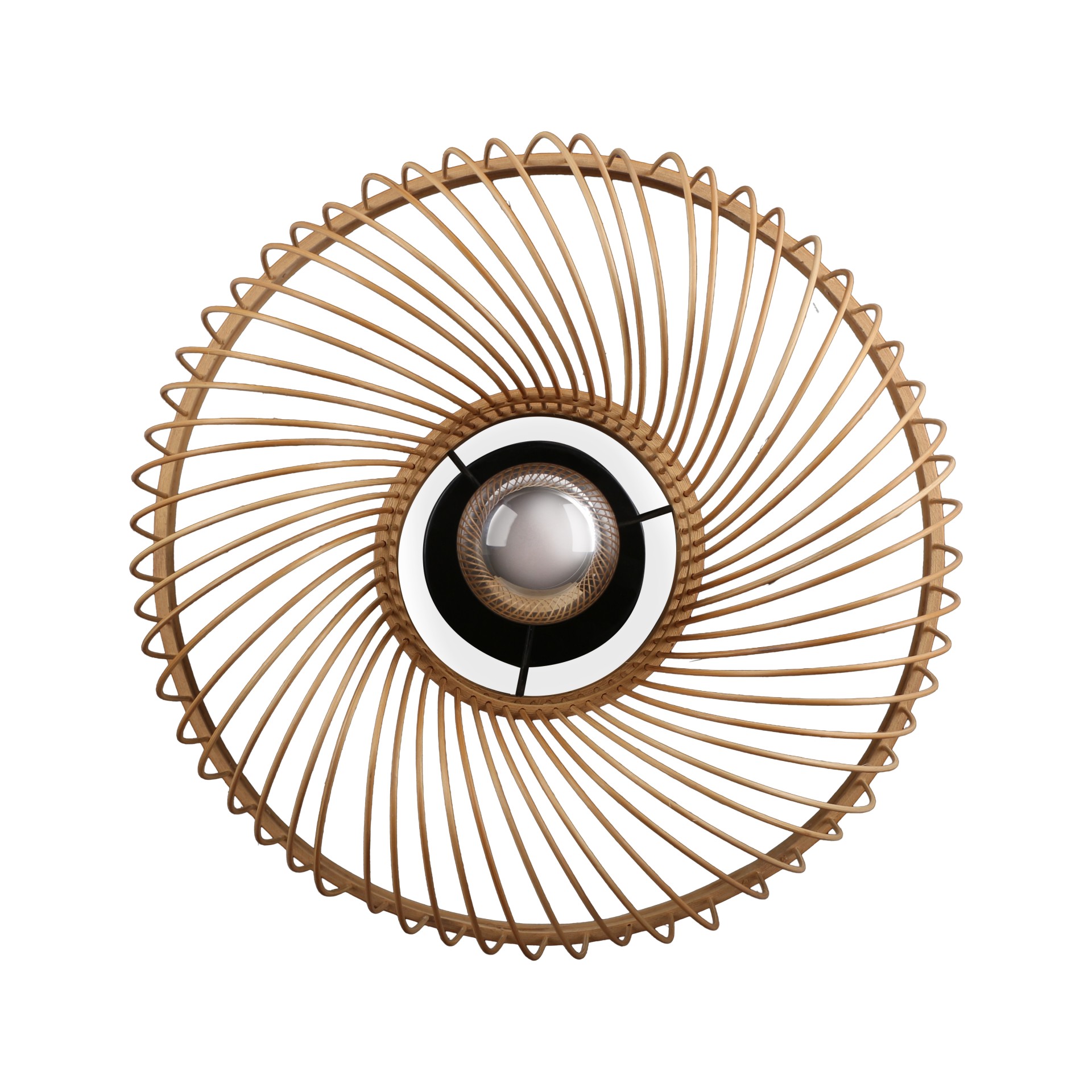 Tasarım: El işçiliğiyle örülmüş bambu lifleri · Sarmal formda dairesel ışık dağılımı · Duvar yüzeyine yumuşak gölge efekti veren yapı