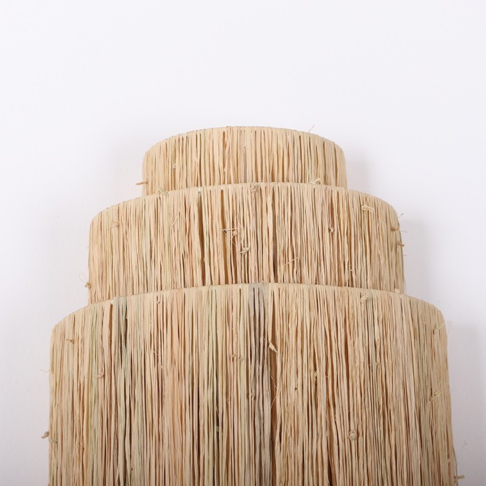 Ürünlerimiz deforme olmayı engelleyen statik boyalı galvaniz tel kafes üzerine el işçiliği ile tamamen doğal rafyadan imal edilmiştir.