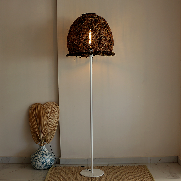 Afrika 50x48 cm. Beyaz Ayaklı Rattan Lambader