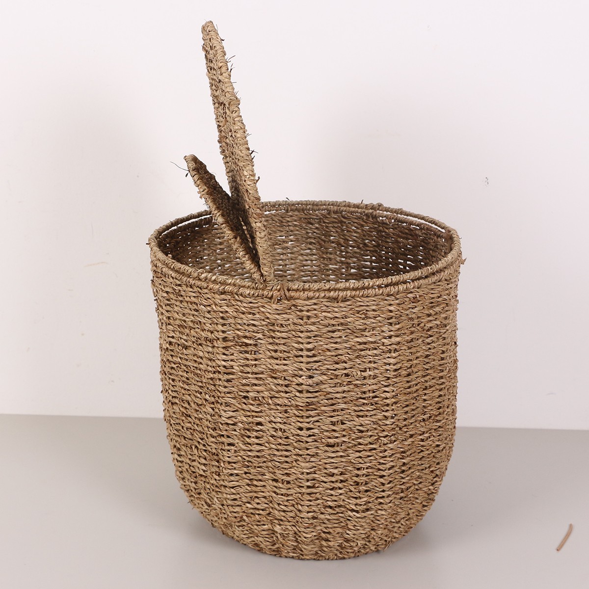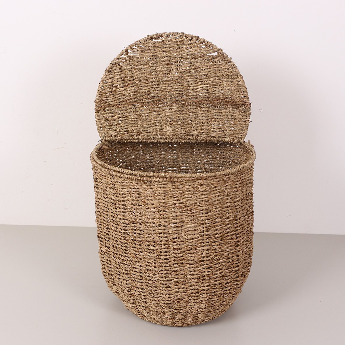 - Ürünümüzde statik boyalı tel kafes üzerine örülmüştür. Kapak kısmı doğal deniz sazı ile gövdeye bağlantısı yapılmıştır.