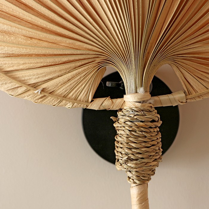 - Ürünümüz el işçiliği ile yapılmış olup, doğal palmiye yaprağının kenarları doğal bambu çerçeve ile örülmesi ile meydana gelmiştir.
