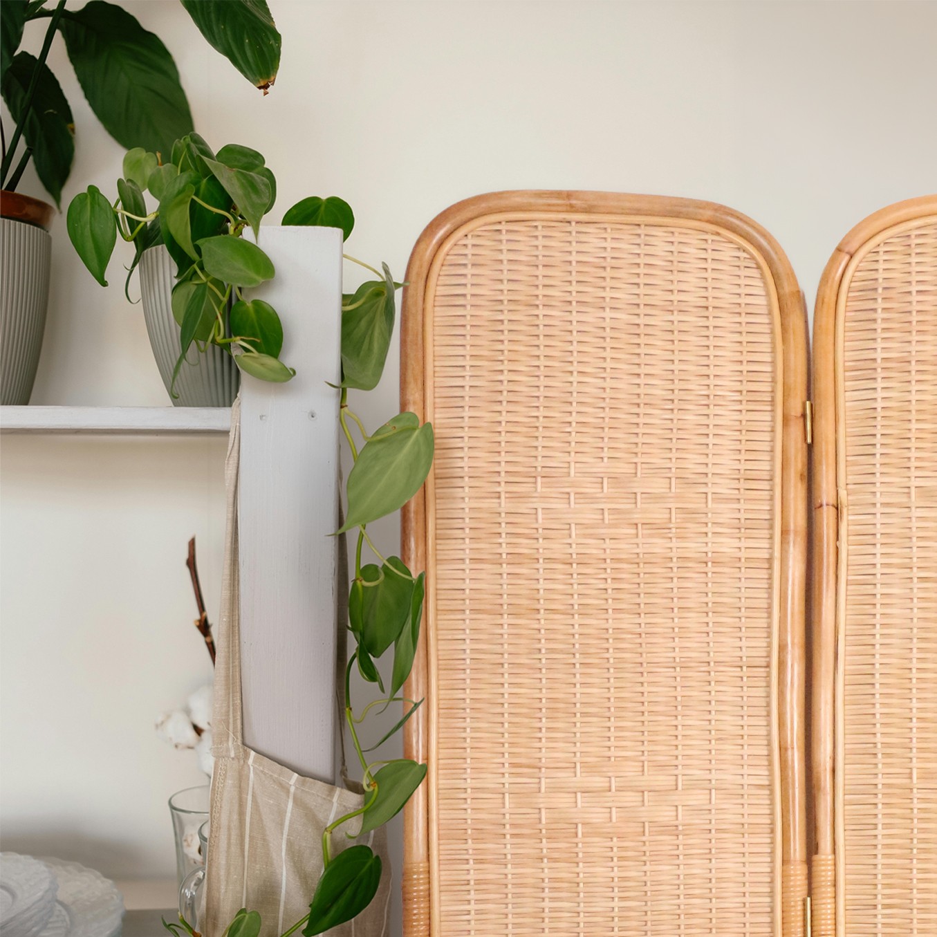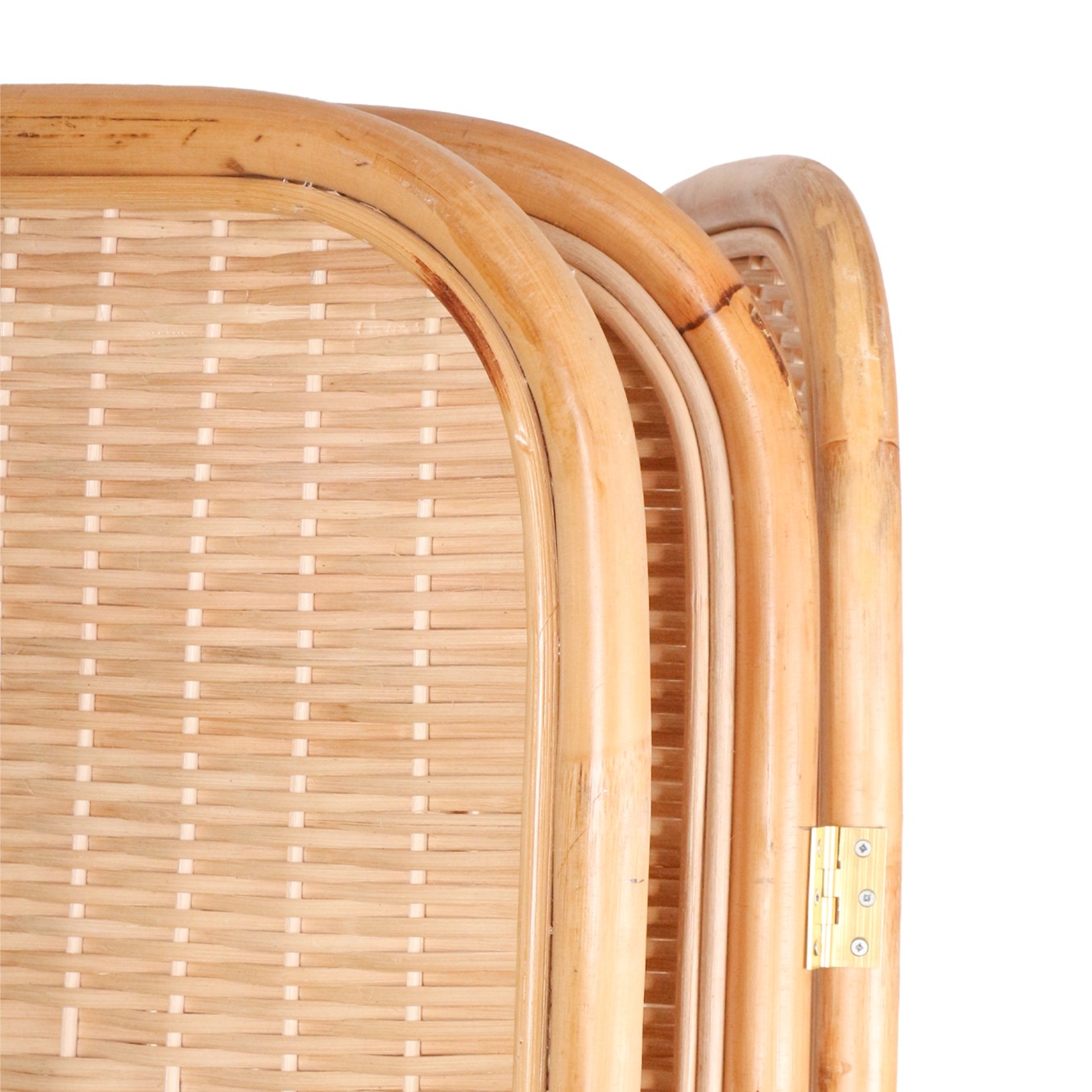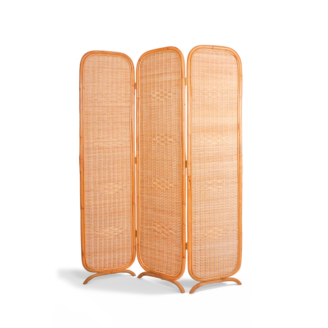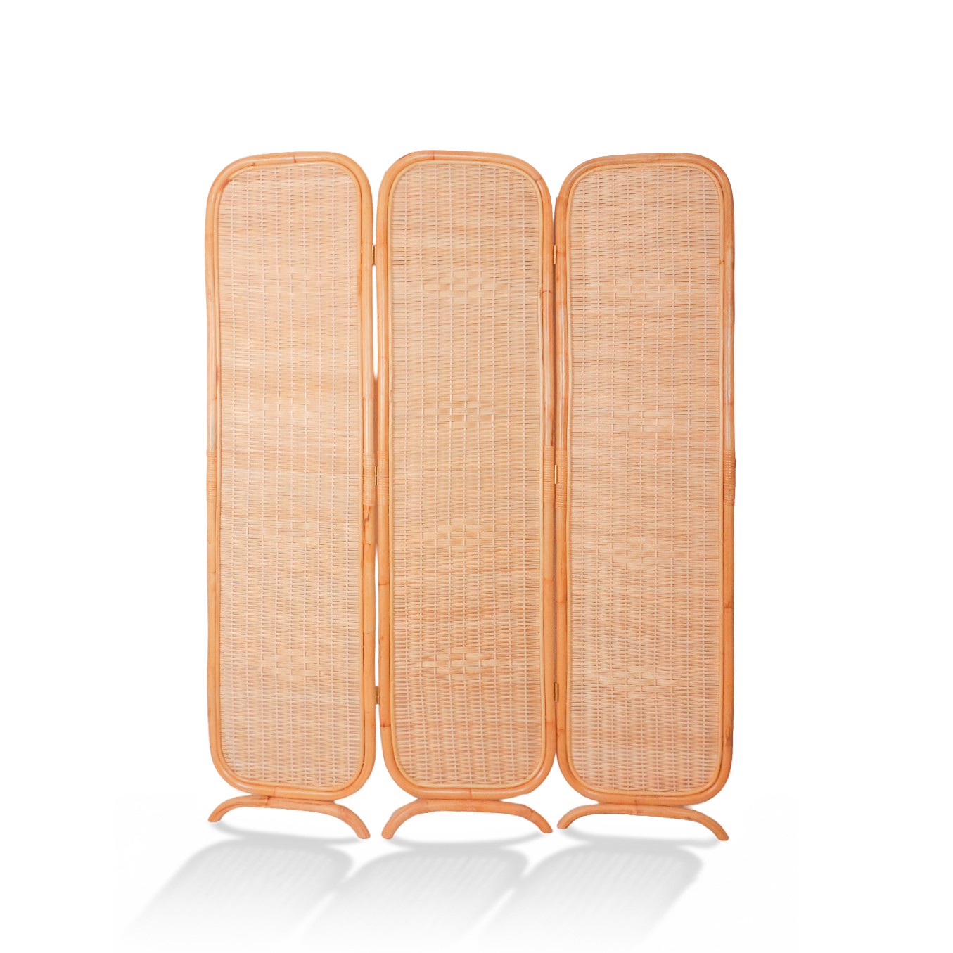 Yüzeyinde kullanılan sık ve el örgüsü doğal rattan malzeme, mahremiyeti sağlarken, mekana sıcak bir bal tonu ve organik bir doku kazandırır. 3 adet katlanabilir kanat yapısı sayesinde, alanları esnek bir şekilde bölme, gizlilik sağlama veya sadece dekoratif bir arka plan oluşturma imkanı tanır. El işçiliğiyle şekillendirilmiş her bir parça, kendine özgü doğal bir karaktere sahiptir. Salon, yatak odası veya konsept dekorasyon alanlarında dikkat çekici bir tasarım unsuru haline gelir.