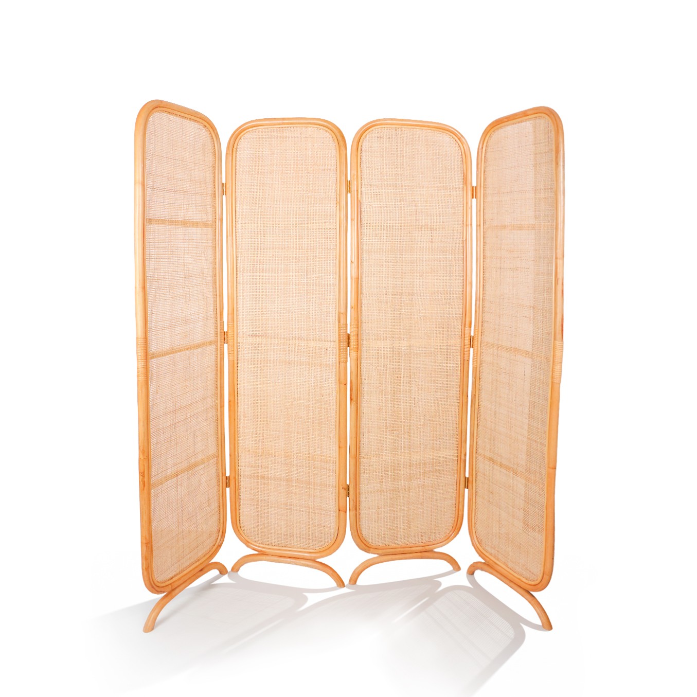 Doğal rattan çerçevesi ve hazeran örgü yüzeyi, odanın ferahlığını koruyarak ışığı filtrelerken, dört kanatlı yapısıyla (her kanat 47 cm) maksimum esneklik ve mahremiyet sağlar. Büyük salonlar, stüdyo daireler veya geniş yatak odası/giyinme alanları için idealdir. Tamamen el işçiliğiyle üretilen bu parça, Mylamp kalitesi ve doğal malzemenin kendine has karakteriyle mekanınıza değer katacaktır.