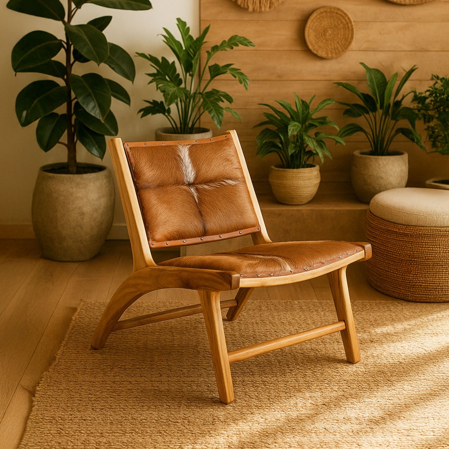 Doğal Teak ve Doğal Deri Sandalye 70x86 cm