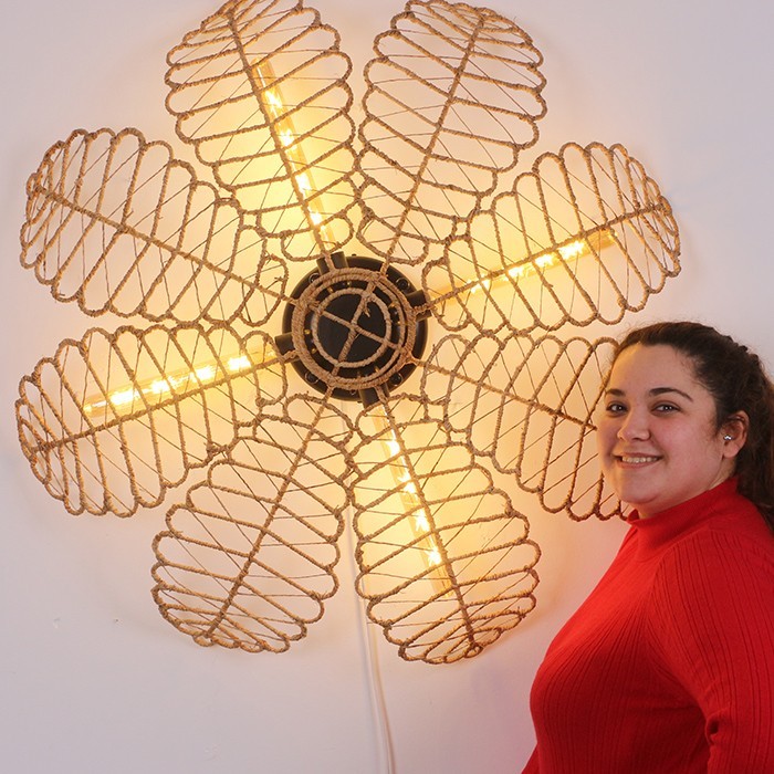 Ürünümüz statik boyalı demir gövde üzerine, sanatkar ustalarımızca doğal rattandan el işçiliği ile titizlikle örülmüştür.