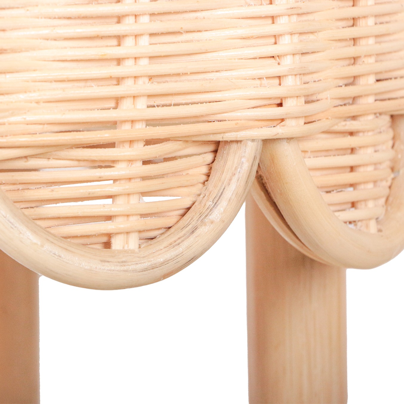 40x45 cm ölçüleri sayesinde yaşam alanlarında hem şık hem de pratik bir tamamlayıcı görevi görür. Doğal rattan gövde, sıcak bej tonları ve yumuşak dokusuyla evin her köşesinde rahatlık hissi yaratır. Gövdeyi destekleyen doğal teak ağacı ayaklar, dayanıklılık ve estetik açıdan ürünü üst seviyeye taşır. Teak ağacı; uzun ömürlü, sağlam ve doğal yapısı sayesinde özellikle doğal mobilya üretiminde tercih edilen değerli bir malzemedir.