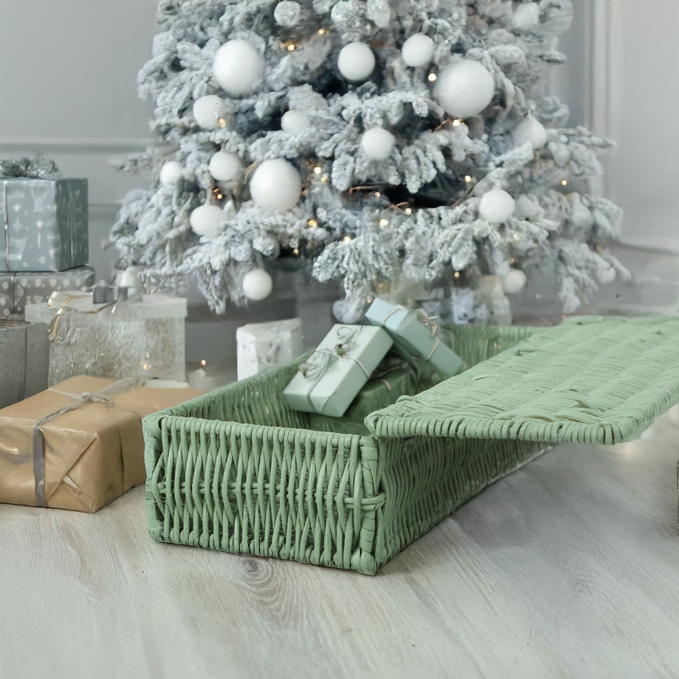 Yeşil Rattan Kapaklı Saklama Kutusu, sade formu ve el işçiliğiyle örülmüş doğal rattan dokusuyla mekânınıza sıcaklık katar. Mat yeşil ton, doğanın dinginliğini yansıtırken; kapaklı yapısı sayesinde düzenli bir görünüm sunar.