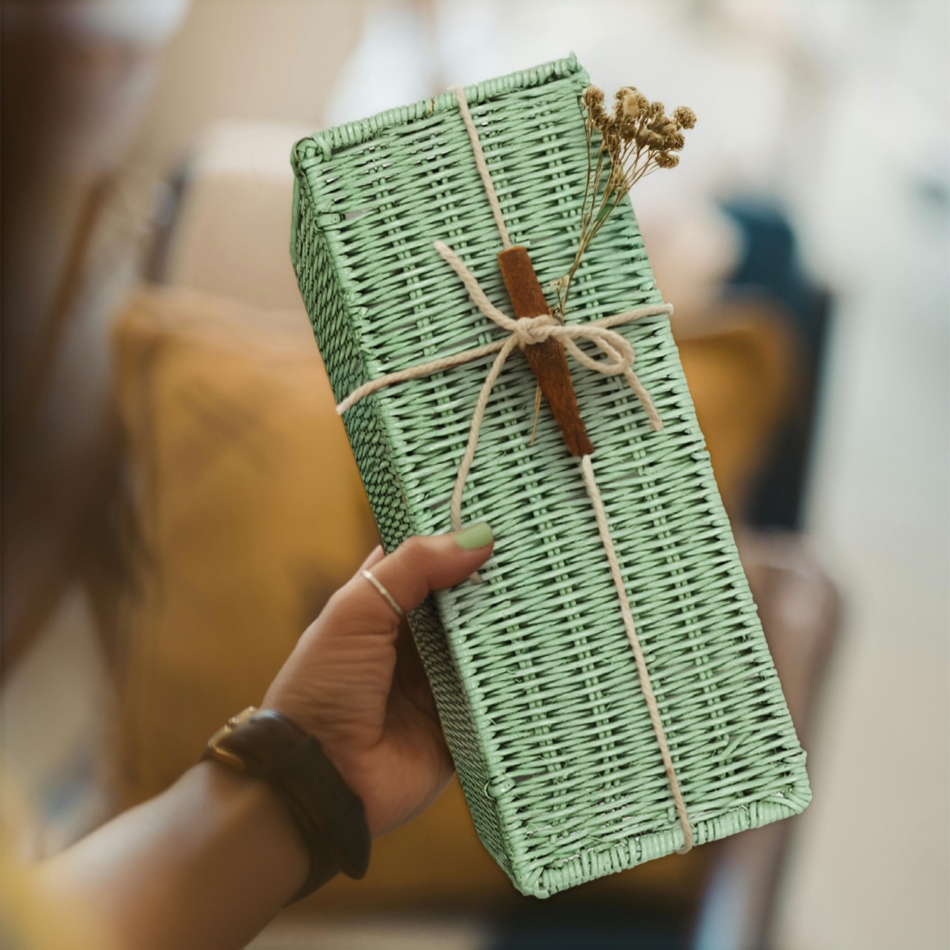 | Ürün Adı | Yeşil Rattan Kapaklı Saklama Kutusu Dekoratif Obje 26x10x5 cm |