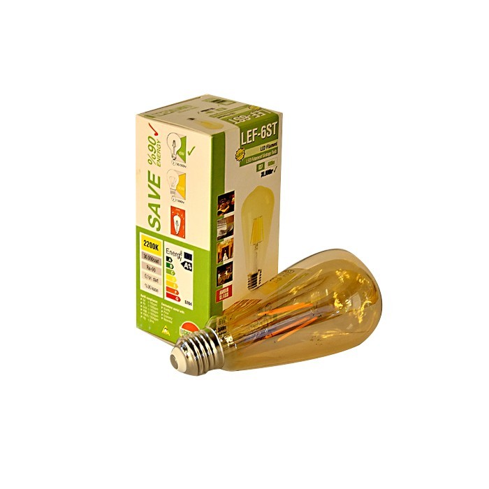 - 6 WATT E27 600 Lumen 2200K LED FLAMENT Rustik Ampul