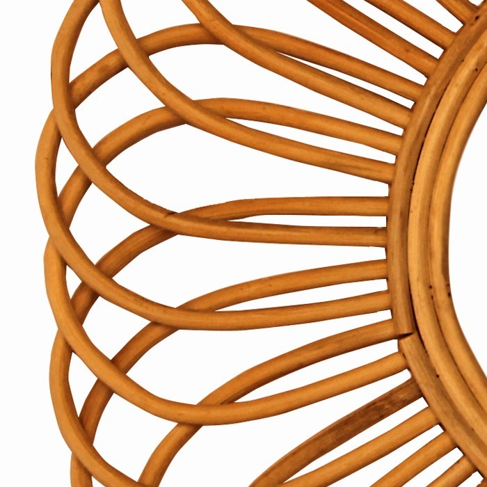 Rattan ve bambu ürünlerimiz, doğal ortamlarında, doğal yollardan toplanmakta, mükemmel görüntü adına herhangi bir işleme tabi tutulmadan veya sabit ölçü elde etmek adına her hangi bir kalıp kullanılmadan el işçiliği ile üretilmektedir.Bitkilerin doğal halleri gereği, bazı noktalarında renk farklılıkları, renk geçişleri, lekeler ve bitkinin gövdesinde var olan çeşitli farklılıklar ürüne de olduğu gibi yansımaktadır.Yine el yapımı ürünlerin, ölçülendirilmesinde kaçınılmaz olarak çok küçük ölçülerde artı/eksi farklar söz konusu olabilir. En: 60 cm. Boy:60 cm. Yükseklik: 3 cm.