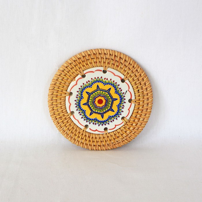 Rattan Çerçeveli 12 cm. Mavi Nokta Desenli Renkli Dekoratif Obje