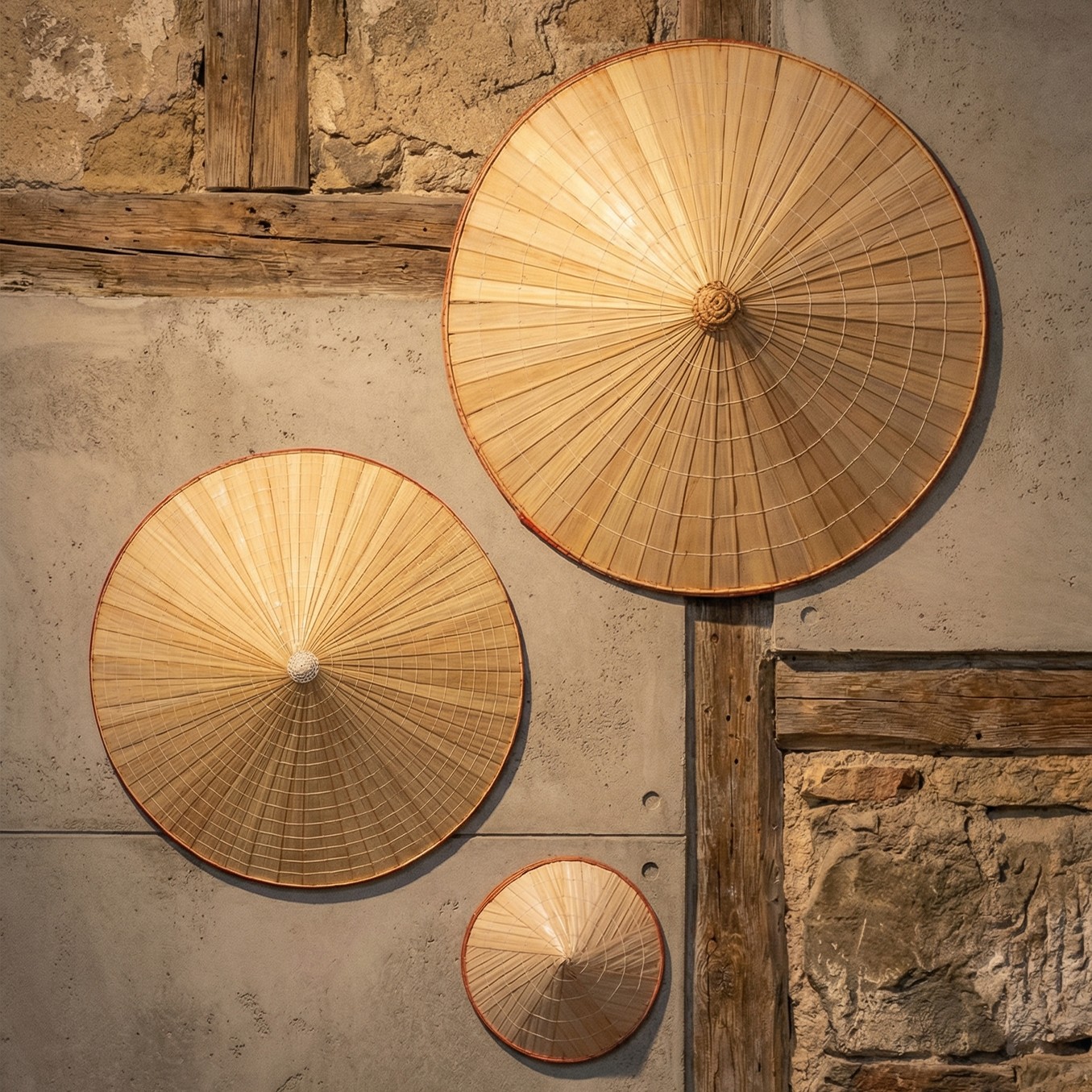 İster duvar dekorasyonu olarak ister tematik bir köşenin tamamlayıcı unsuru şeklinde kullanın; Non La Konik Şapka ve Dekorasyon 3’lü Set, yaşam alanınıza doğal bir sıcaklık ve kültürel bir derinlik katıyor.