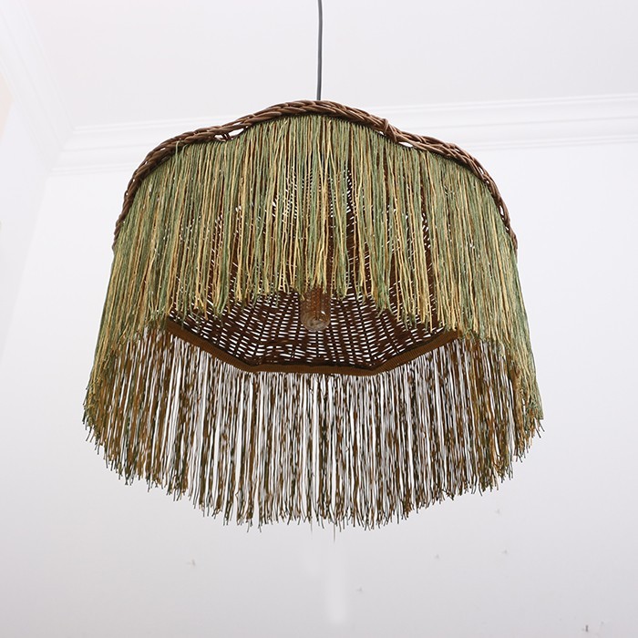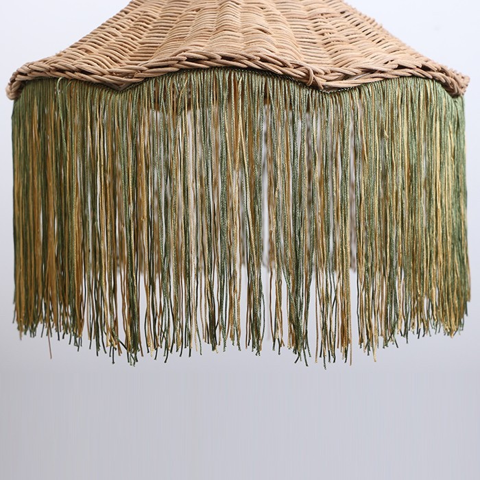 - Ürünümüz zanaatkar ustalarımızca, doğal rattan dan, deforme olmayı engelleyen statik boyalı galvaniz tel kafes üzerine el işçiliği ile imal edilmiştir. Çift renk 20 cm uzunluğunda saçak kullanılmıştır.