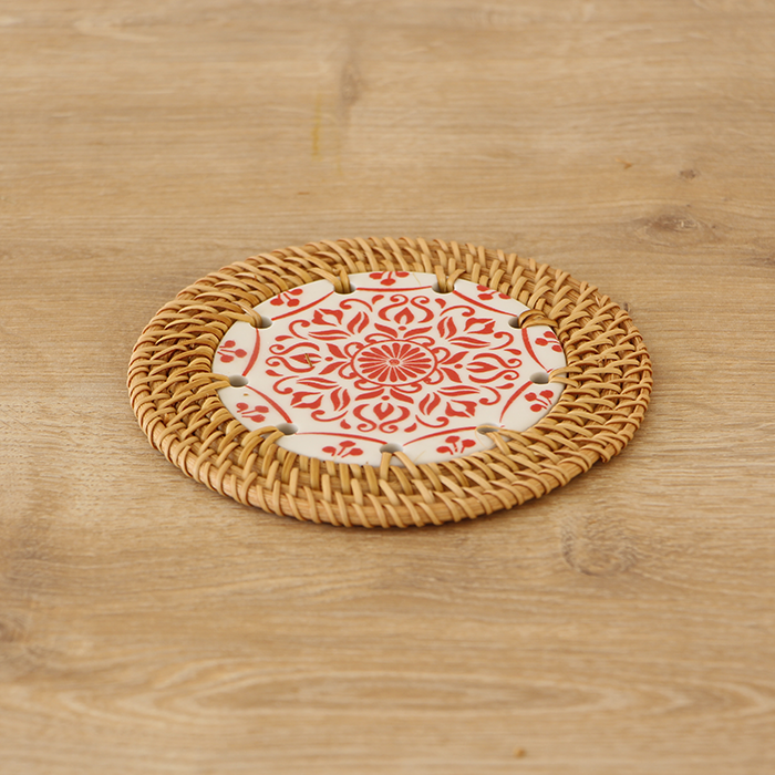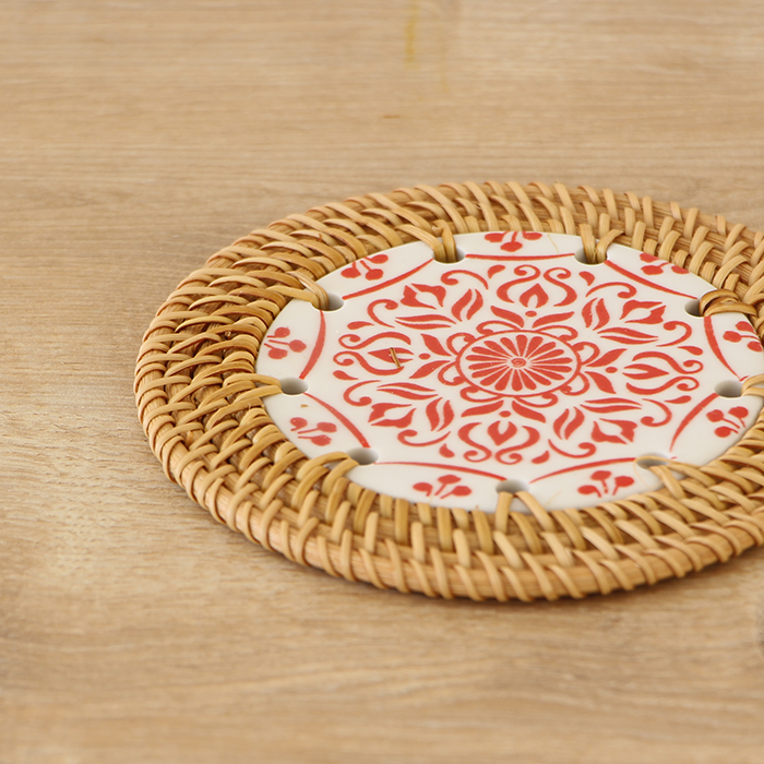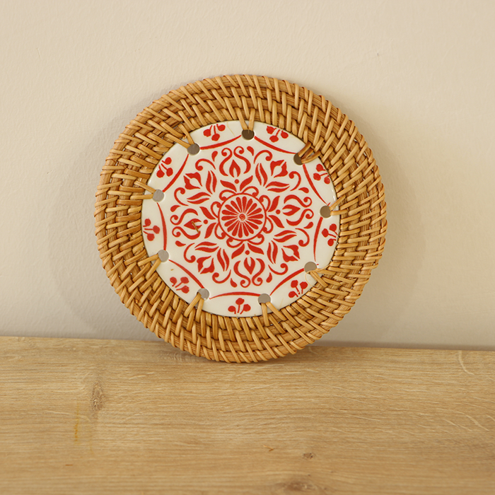 Rattan Çerçeveli 12 cm. Kırmızı Geometrik Desenli Dekoratif Obje