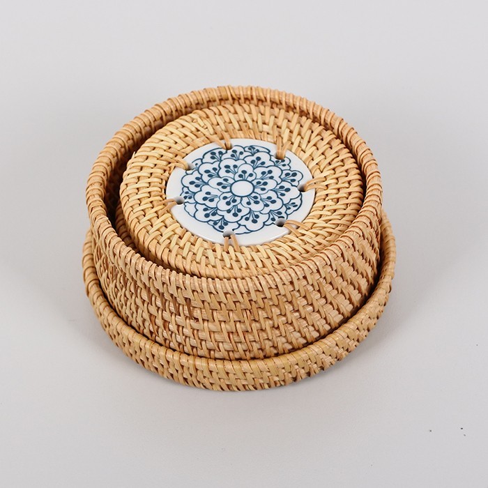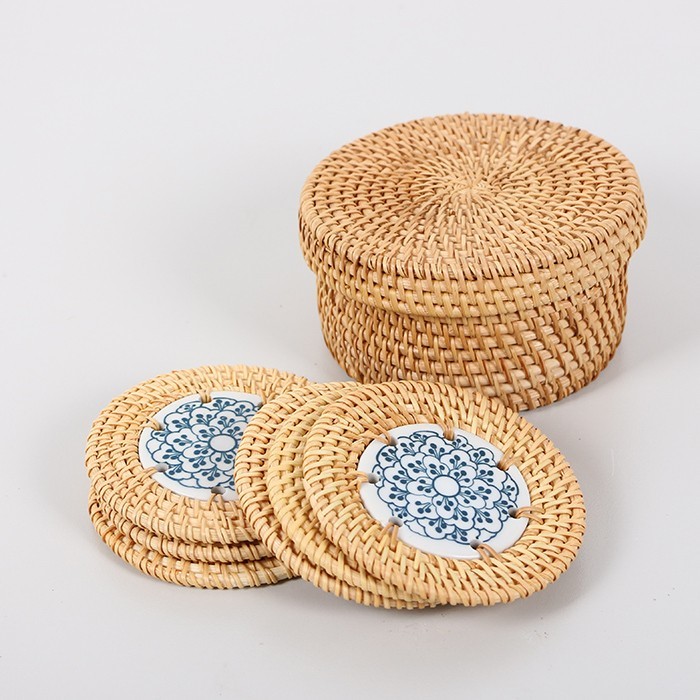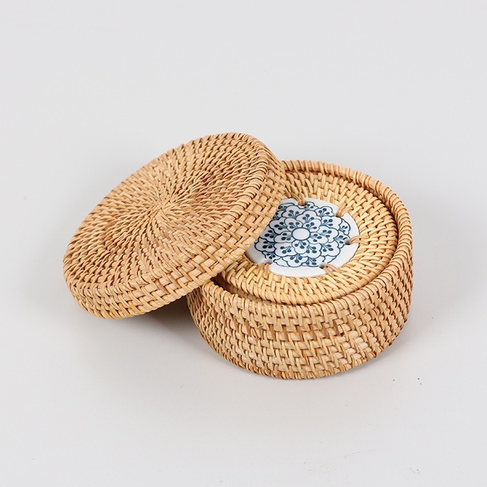 Paket içerisinde 6 adet 10 cm çapında tabak ve 1 adet 13x6 cm ölçülerinde rattan kutusu bulunmaktadır.
