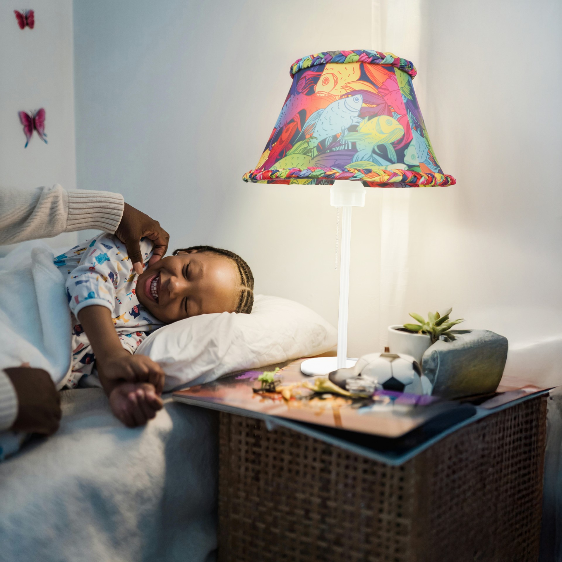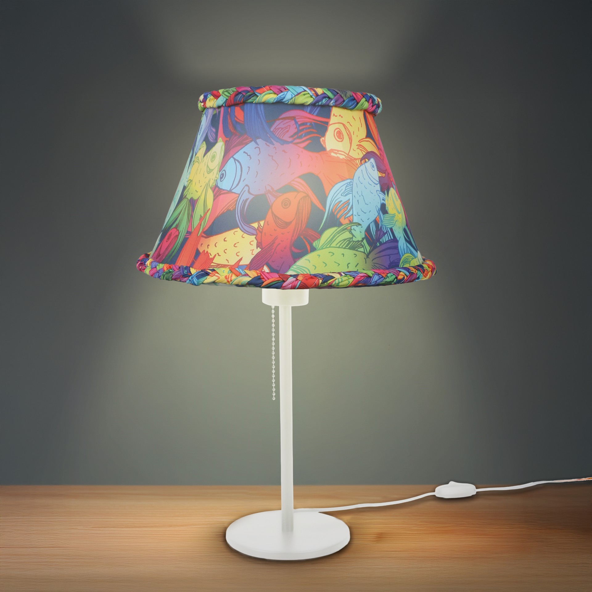 Rüya Renkli Likralı Kumaş Masa Lambası, canlı desenleri ve esnek likralı kumaşıyla mekânınıza neşeli bir hava katar. Zincir çekme anahtarı, kullanımı kolay ve nostaljik bir açma-kapama deneyimi sunar.