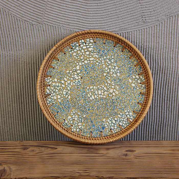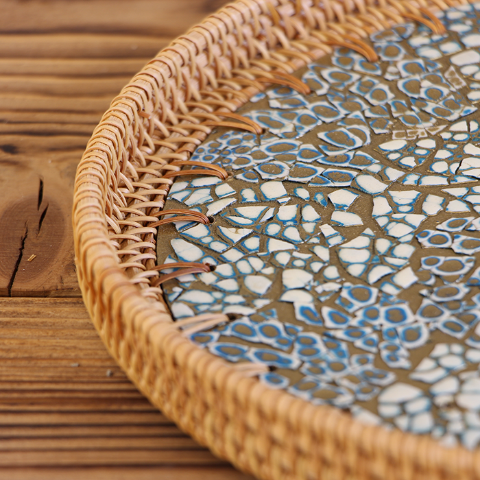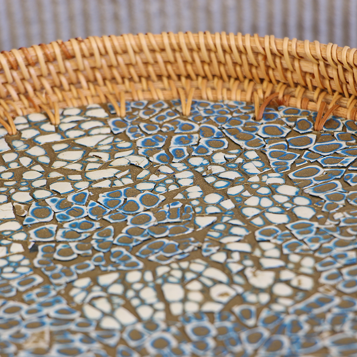 - Rattan ve sedefli mozaikten el işiliği ile üretilmiştir.