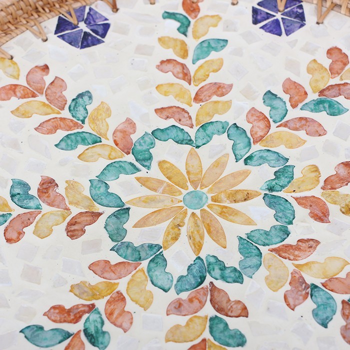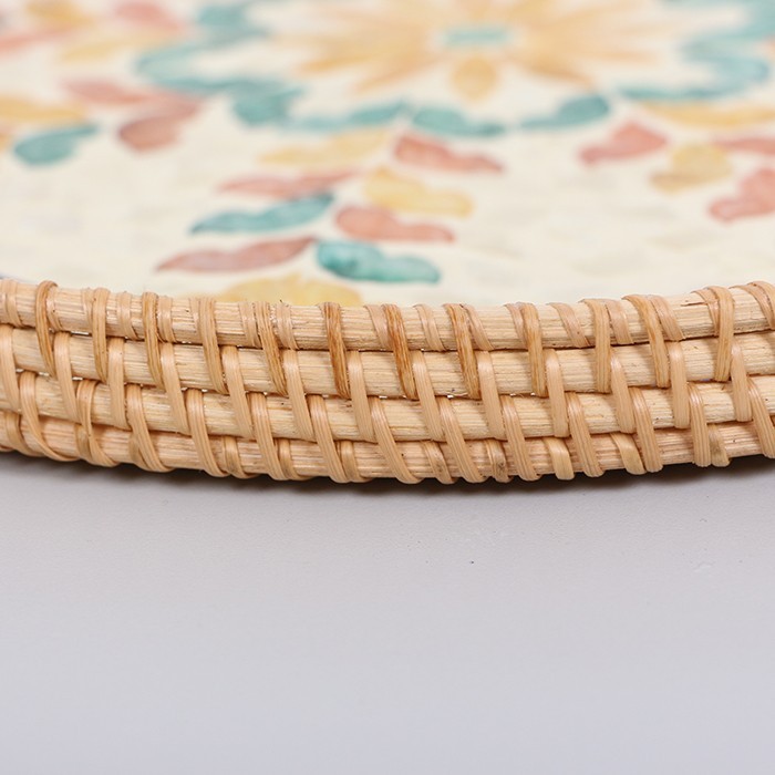 - Ürünümüz zanaatkar ustalarımızca, doğal rattan'ın sık dokuması ve doğal sedeflerin birleştirilerek, mdf üzerine derz ile el işçiliği ile yapılmıştır. Sağlığa zararı olmayan PU vernik kullanılarak ürünün korunması sağlanmıştır.