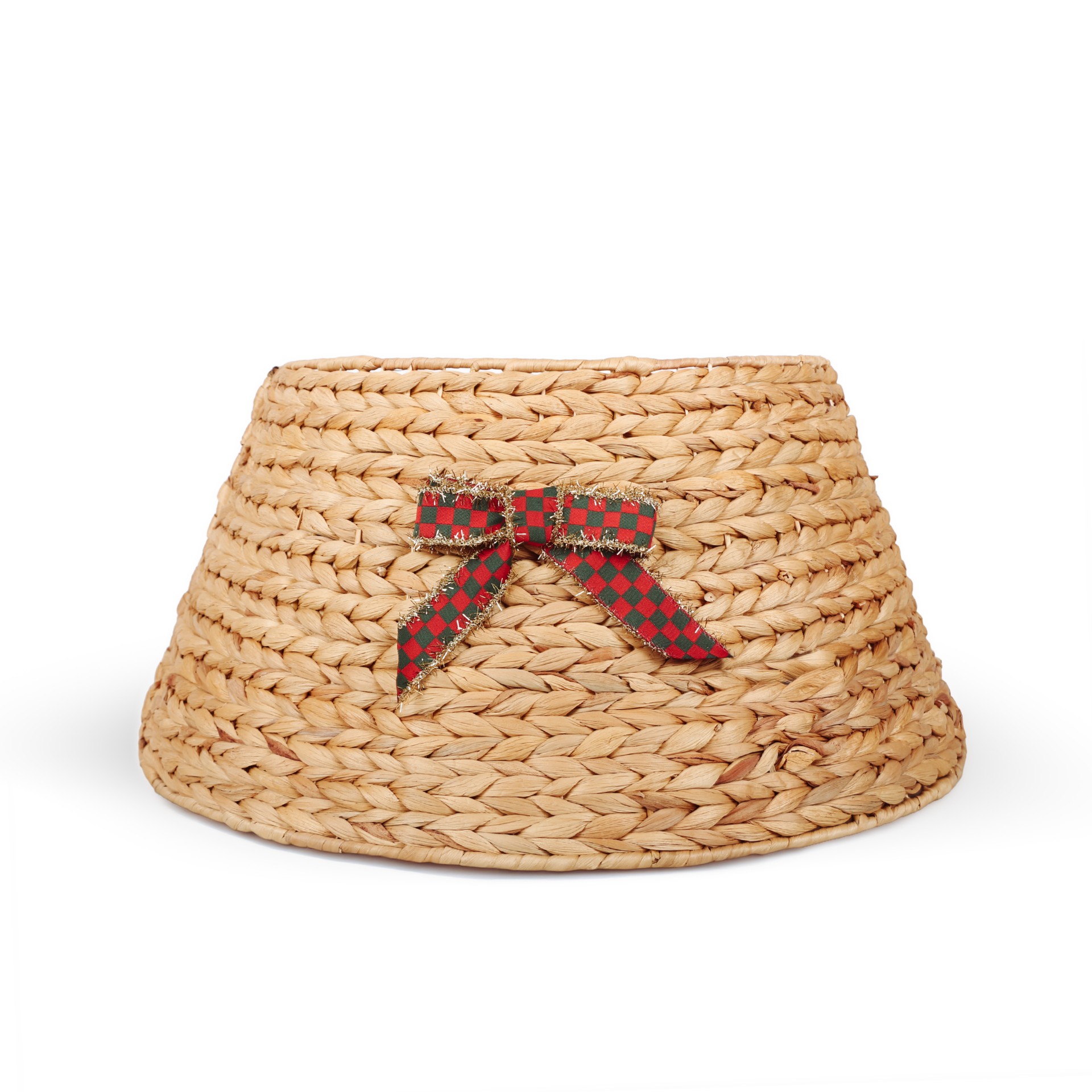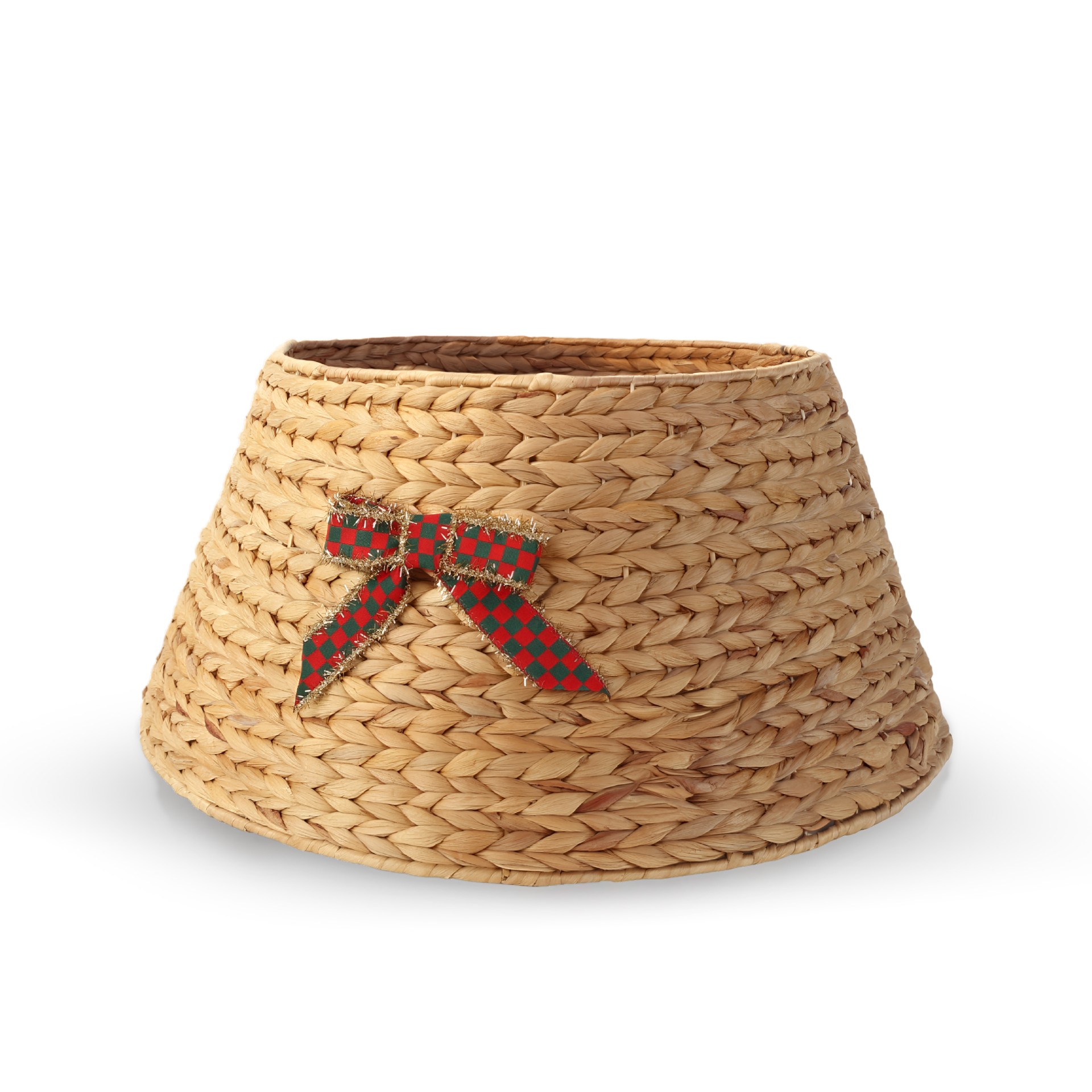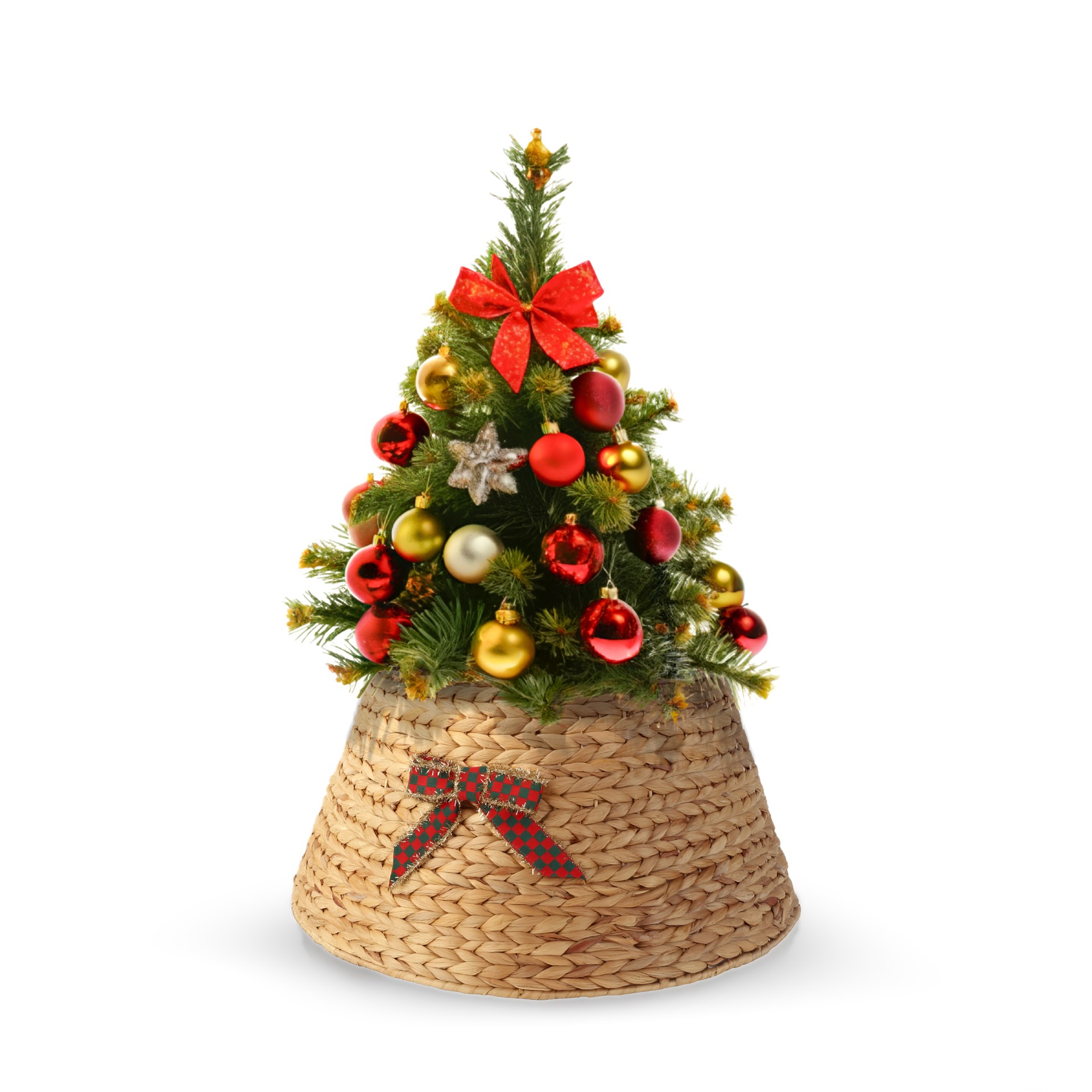 Doğal Su Sümbülü Kurdele Detaylı Yılbaşı Ağacı Eteği, klasik plastik süslerin ötesinde, el emeğiyle dokunmuş zarif bir yılbaşı atmosferi sunar. Doğal Su Sümbülü liflerinden örülen yapısı, sıcak kahverengi tonlarıyla iç mekânlara huzurlu bir denge getirir.