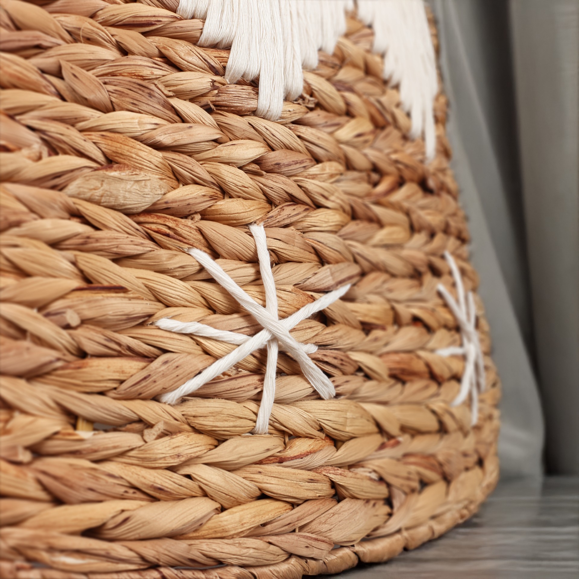 | Malzeme | Doğal Su Sümbülü lifi · El örgüsü dokuma · Üst kenarı makrome ipiyle el işçiliğiyle tamamlanmıştır |
