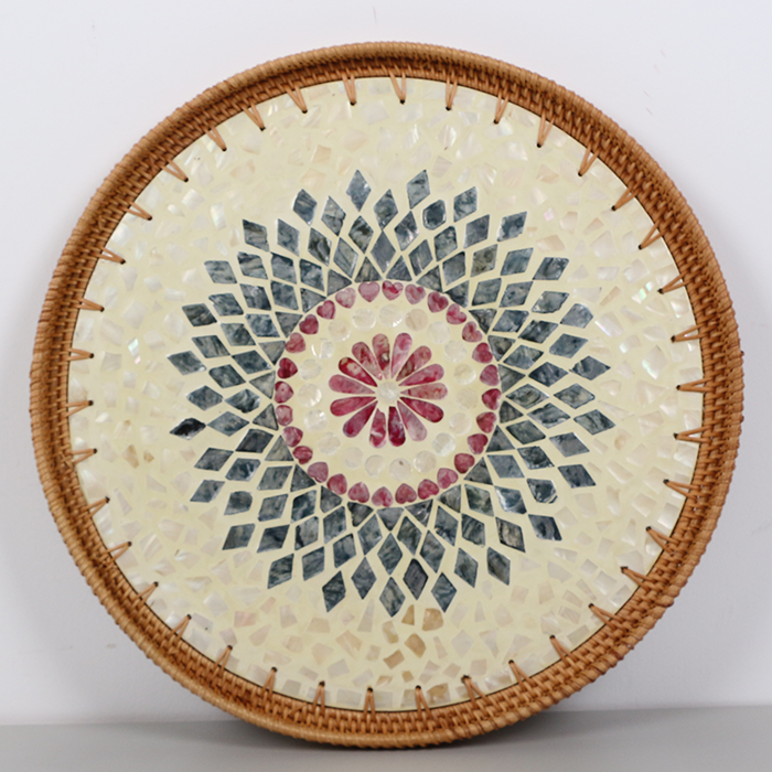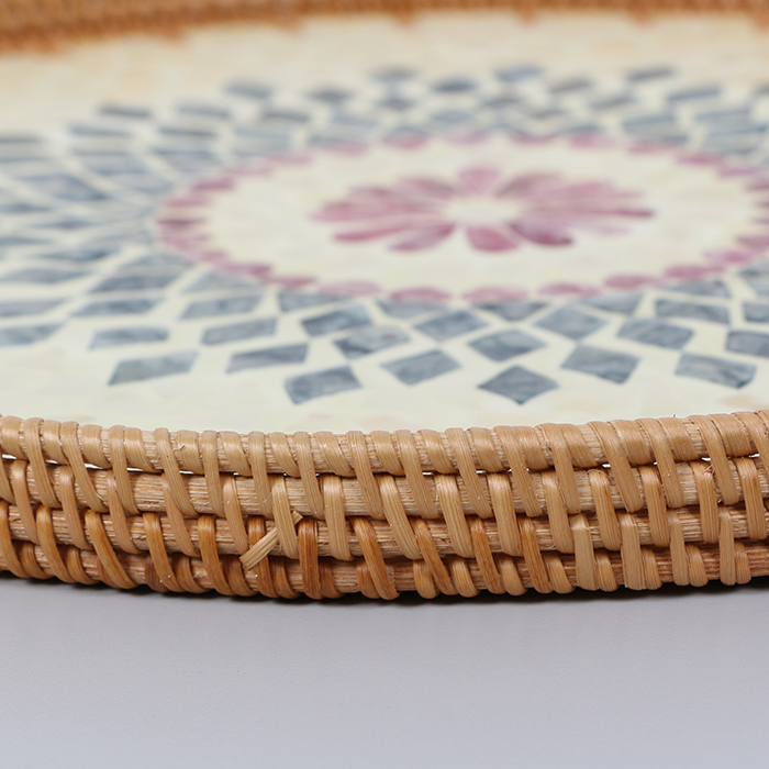 - Rattan ve sedefli mozaikten el işiliği ile üretilmiştir.