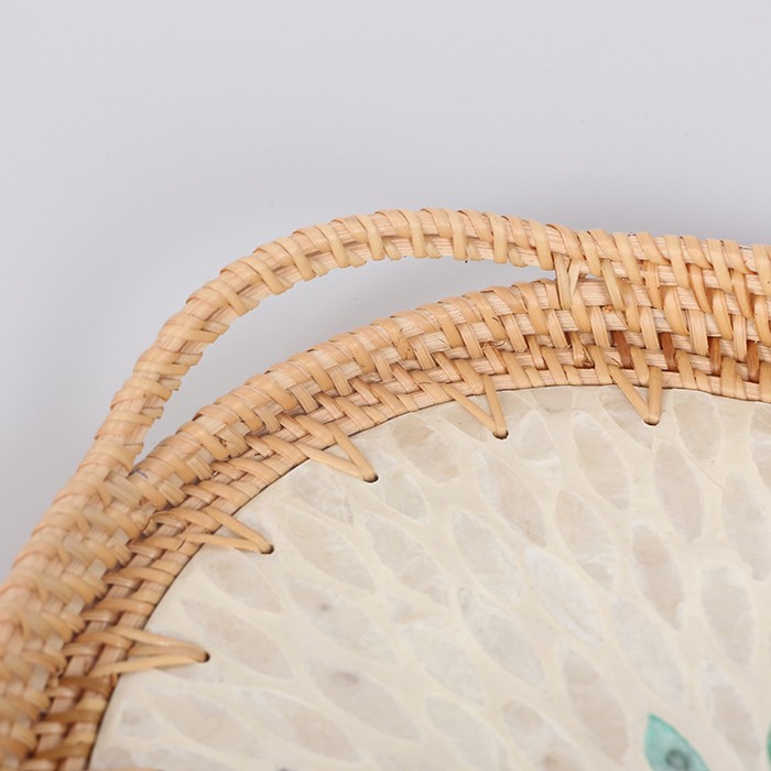 - Rattan ve sedefli mozaikten el işiliği ile üretilmiştir.