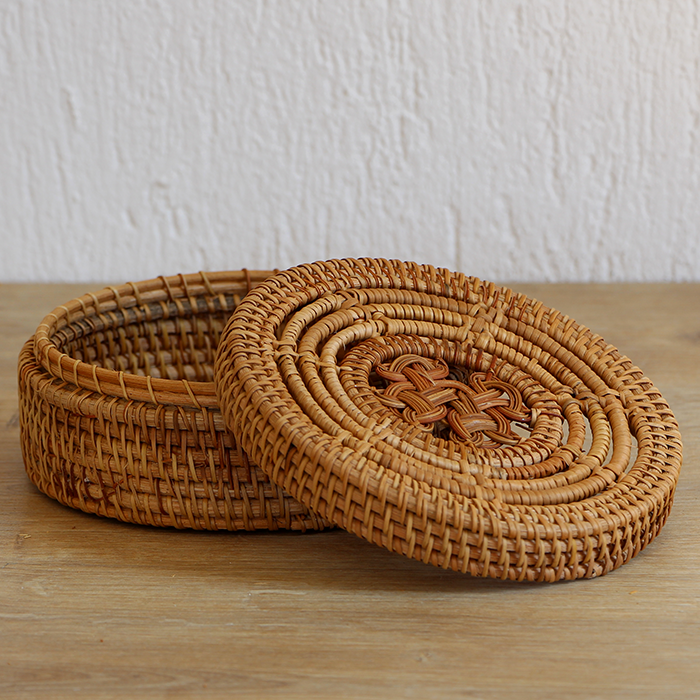 Dekoratif 16x16x6,5 cm. Rattan Saklama Kutusu - 01