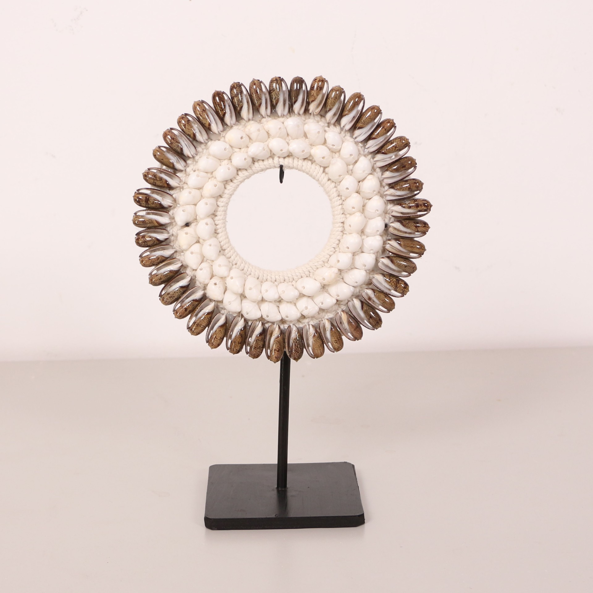 - Ürünümüz Doğal Deniz Kabuklularıyla ve makrome örgü üzerine tamamı El işçiliği ile yapılmıştır. Siyah Metal kaide üzerinedir.