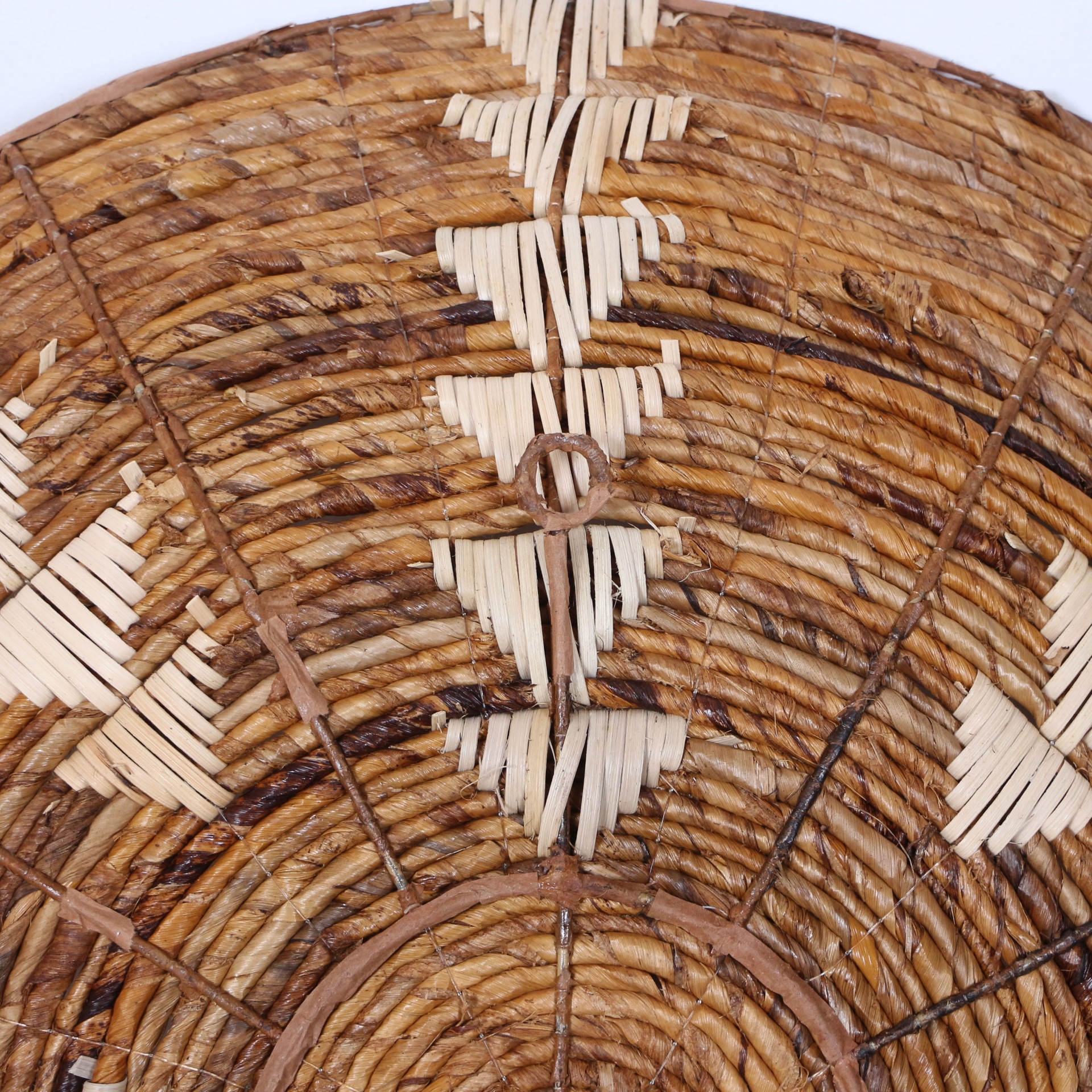 - Ürünümüzün tamamı doğal Abaka bitkisinden zanaatkar ustalarımızca, yine rafya sarılı tabak şeklinde tel kafes üzerine pamuk ipliği ile desen verilerek el işçiliği ile üretilmiştir. Arkasında tel kafese sabit metal askılık ürünün duvarda daha belirgin ve tok durmasını sağlamıştır.