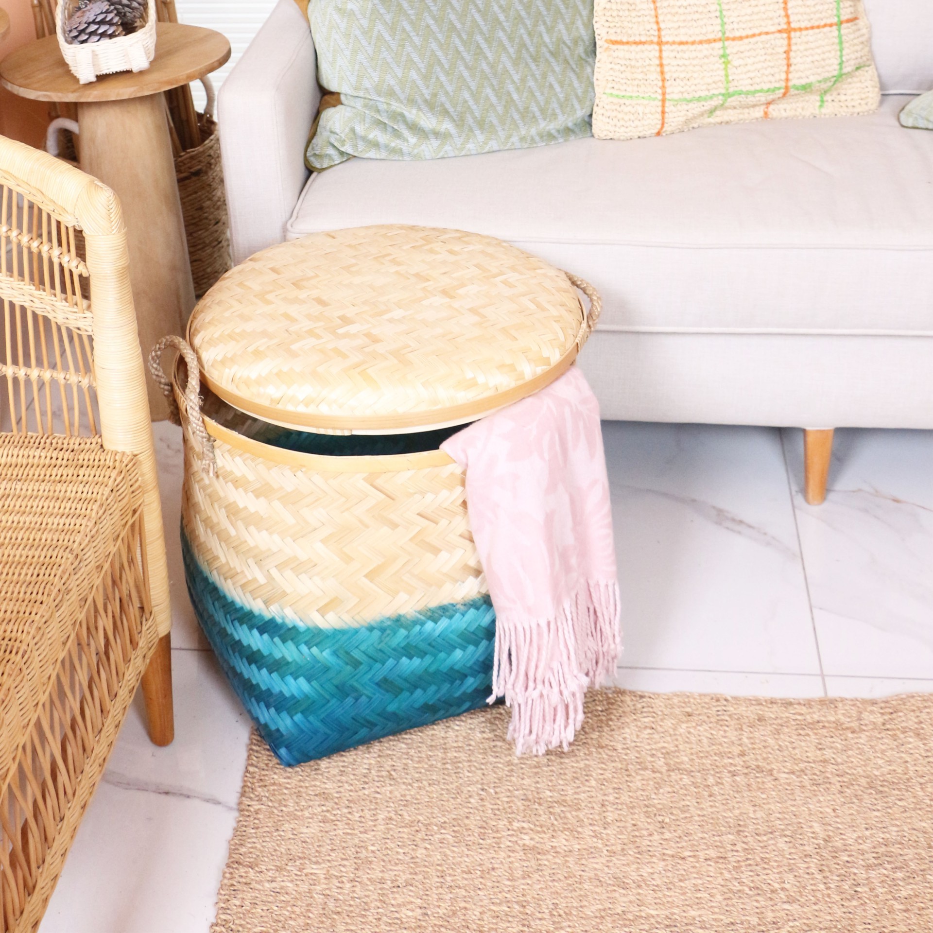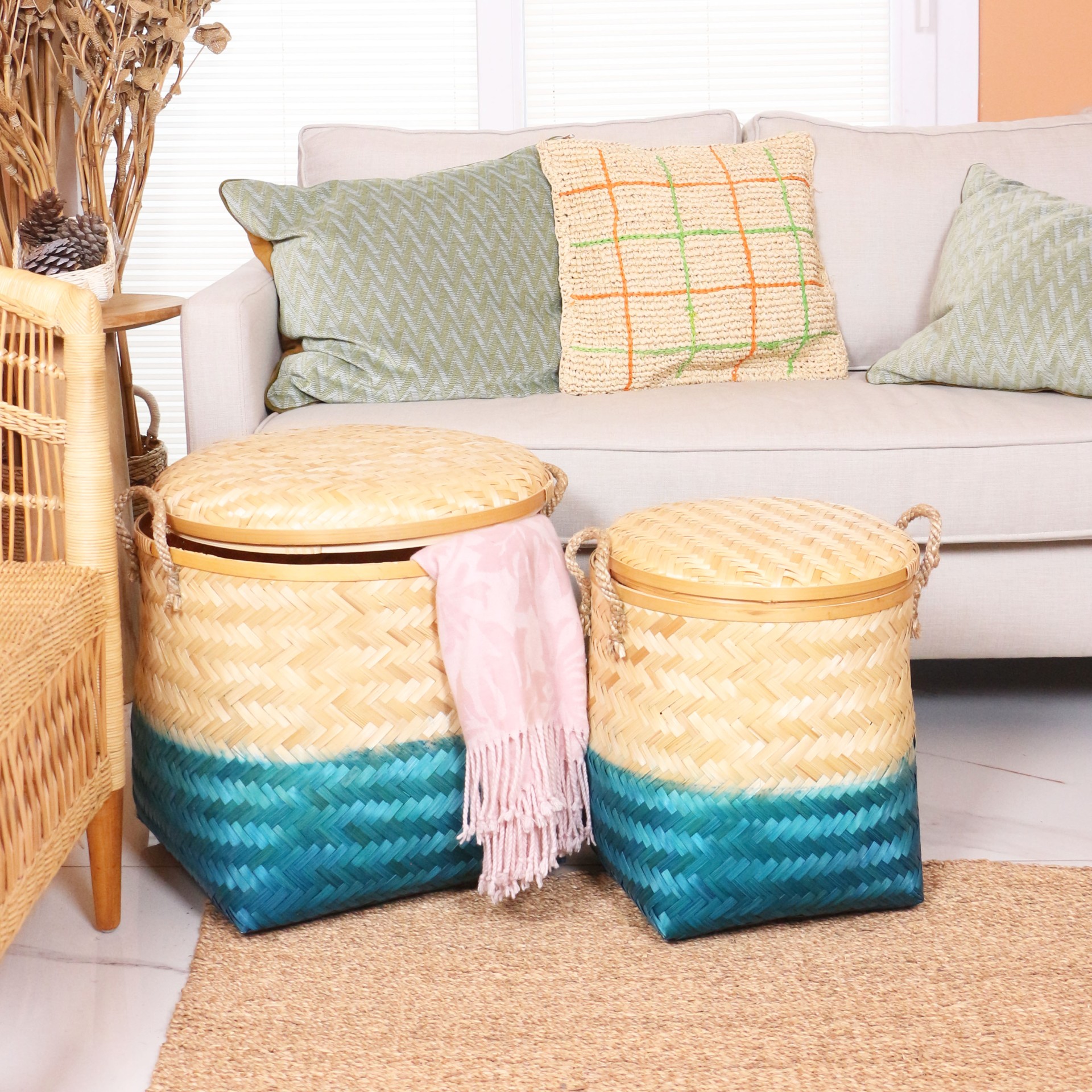 - Doğal Bambunun dış kabuğundan el işçiliği ile örülmüştür. Saklama- Düzenleme ve dekor ihtiyaçlarınız için ideal bir seçenektir.