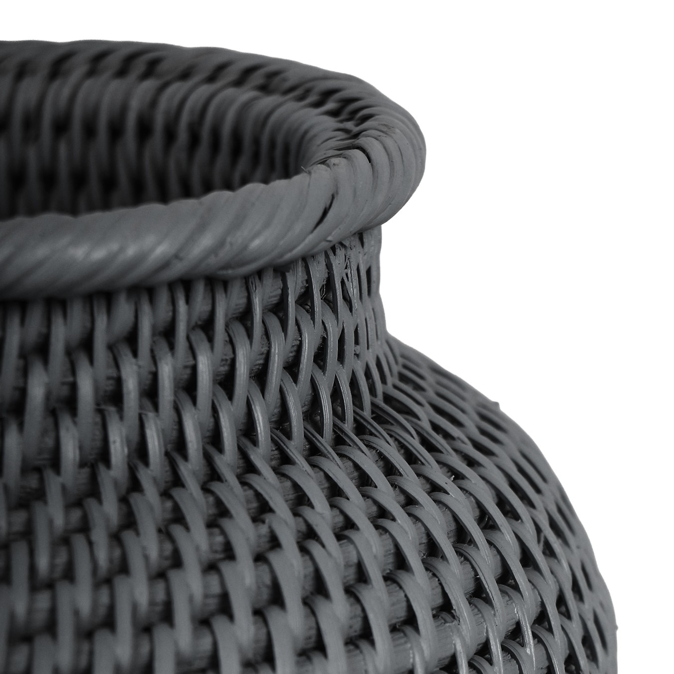 Laura Rattan Mini Siyah Vazo, tek başına şık bir heykel olarak veya kuru çiçek/dekoratif dallar ile birlikte kullanılabilir. Sınırlı alanı olan konsol, kitaplık ve çalışma masaları için ideal bir aksesuardır.