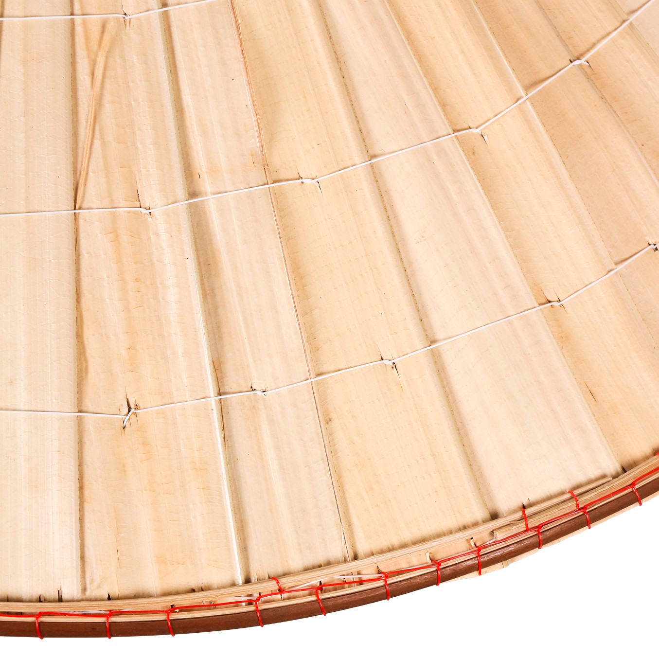 Kenar detaylarında kullanılan kırmızı doğal ip sarımı, ürünün karakteristik Asya dokusunu öne çıkarırken aynı zamanda güçlü bir görsel kontrast oluşturuyor.