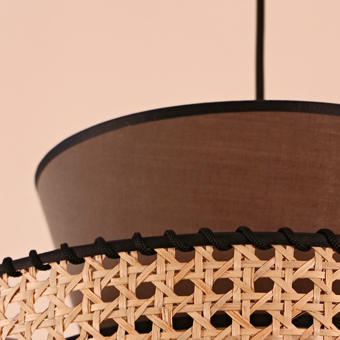 Çap; 40 cm Yükseklik: 50 cm Ürünümüz Doğal hazeran malzemeden ve ışık geçirgenliği olan Abajur kumaşından statik boyalı tel üzerine el işçiliği ile üretilmiştir. Ürünümüz siyah askı tesisatı ile birlikte gönderilecektir.