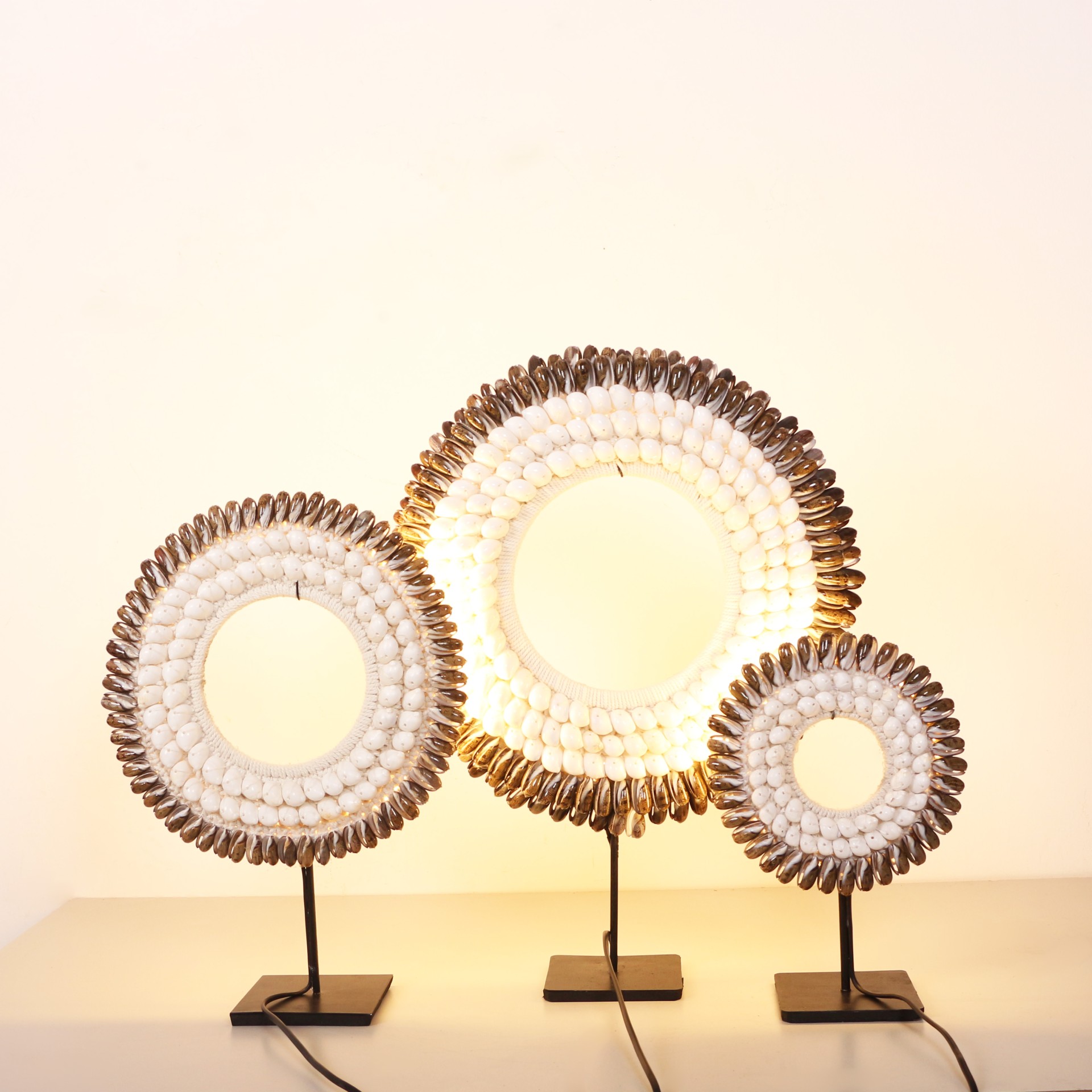 - Ürünlerimiz Doğal Deniz Kabuklularıyla ve makrome örgü üzerine tamamı El işçiliği ile yapılmıştır. Siyah Metal kaide üzerinedir.