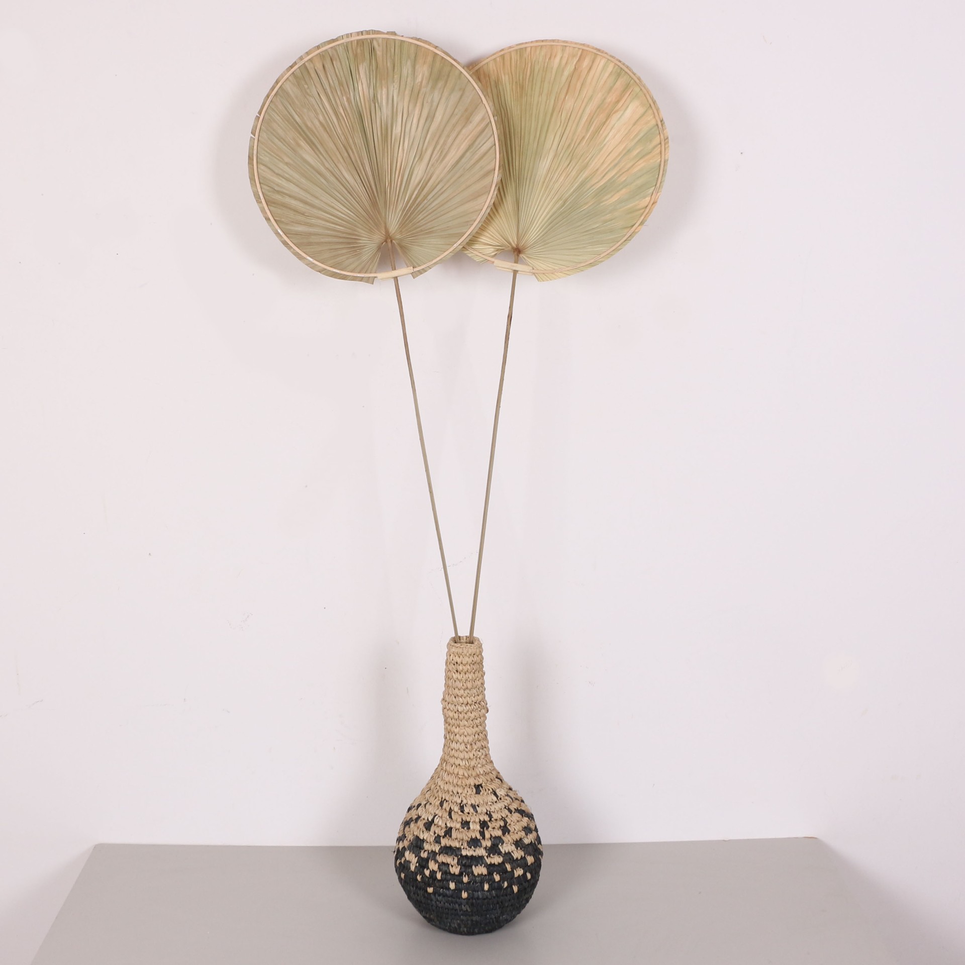 - Ürünümüzün , ön ve arkası rattandan yuvarlak çerçeve ile dekor verilmiş ve yaprağın uzun süreli kullanımı sağlanmıştır. Doğal Asya Palmiye Ağacının kurutulmuş yaprağıdır. Yaprakların doğal oluşu ve elde kesiiminden dolayı ölçü farklılıkları olabilir.