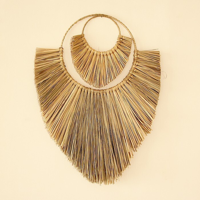 Deniz sazından elde üretilmiştir. Çap: 46 cm Yükseklik: 66 cm Deniz sazının yüksekliği: Metal halka üzerine deniz sazından elde örülmüştür.