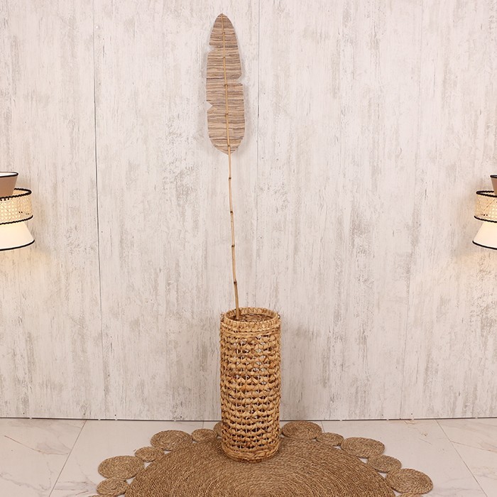 Ürünümüz doğal bambu çubuk üzerine, sanatkar ustalarımızca doğal su sümbülü kullanılarak pamuk iplikle dokuma yapılmıştır. Ürünün tamamı el işçiliği ile titizlikle örülmüştür.
