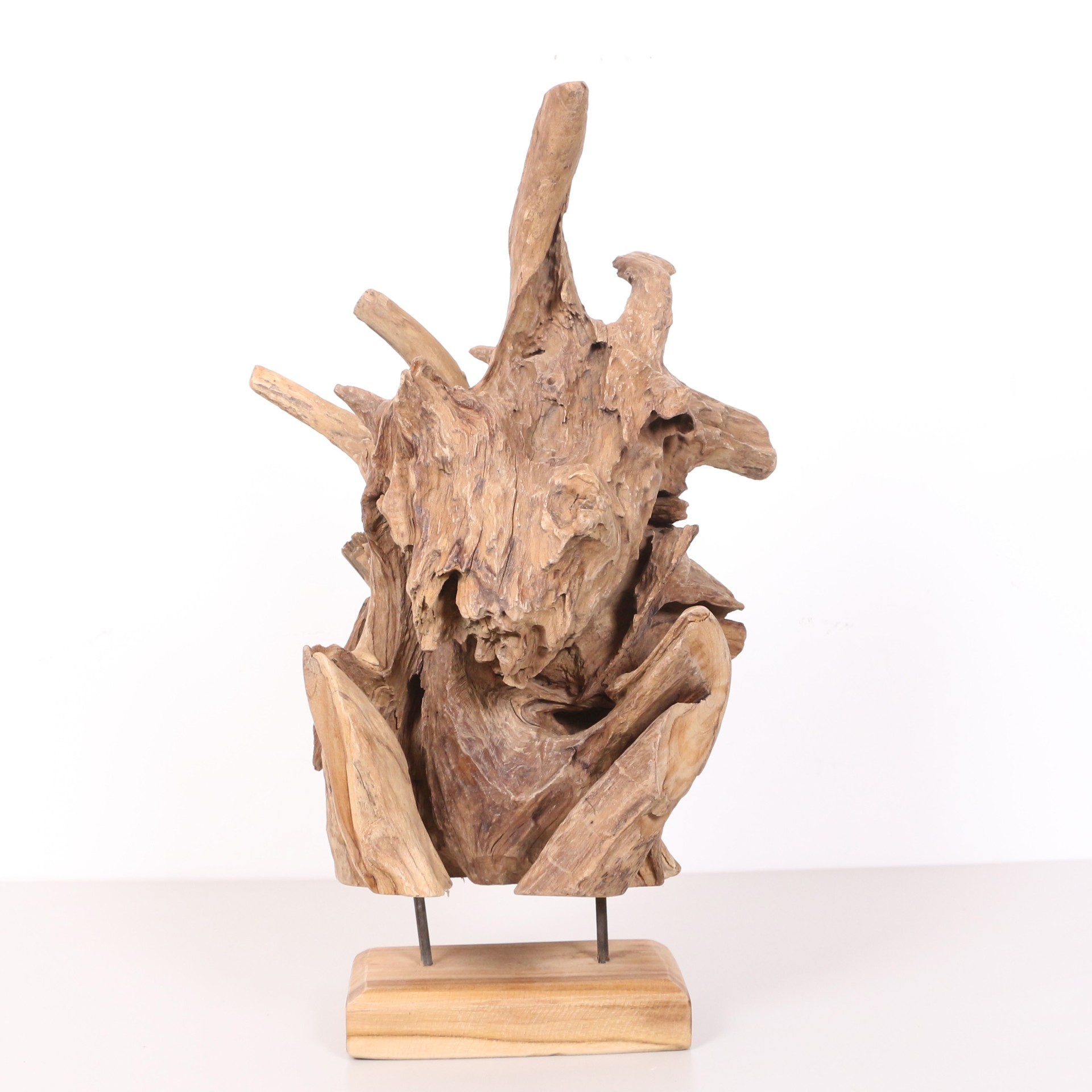 Ürünümüz sanatkâr ustalalarımızca Doğal Teak Ağacının ESKİ Kökleri, deniz ve akarsulardan toplanan (Drift Wood) teak parçalar, eski teak Gövde, dal ve parçalar birleştirilerek, teak ahşap tabana metal çubuklarla sabitlendirilmiştir. Herbiri Doğal oluşunun gereği kök, dal ve gövdesinde ÖLÇÜ-ŞEKİL farklılıkları, yarıklar, doku ve renk farklılıkları, oyma izleri vardır. Bu yüzden herbiri eşşizdir.