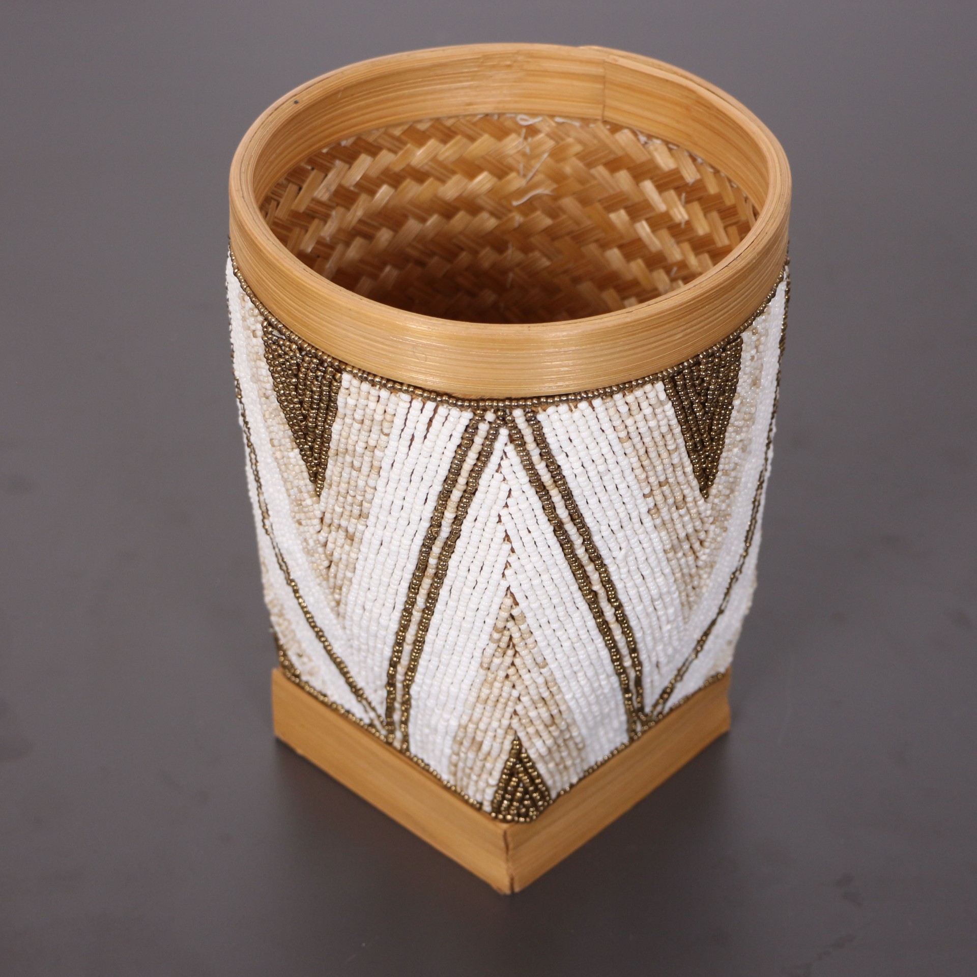 - Doğal Bambunun dış kabuğundan el işçiliği ile örülmüştür. Minik Cam boncuklar ve Deniz Kabukluları ile bambu kutunun üzerinde el işçiliği ile dekor verilmiştir.