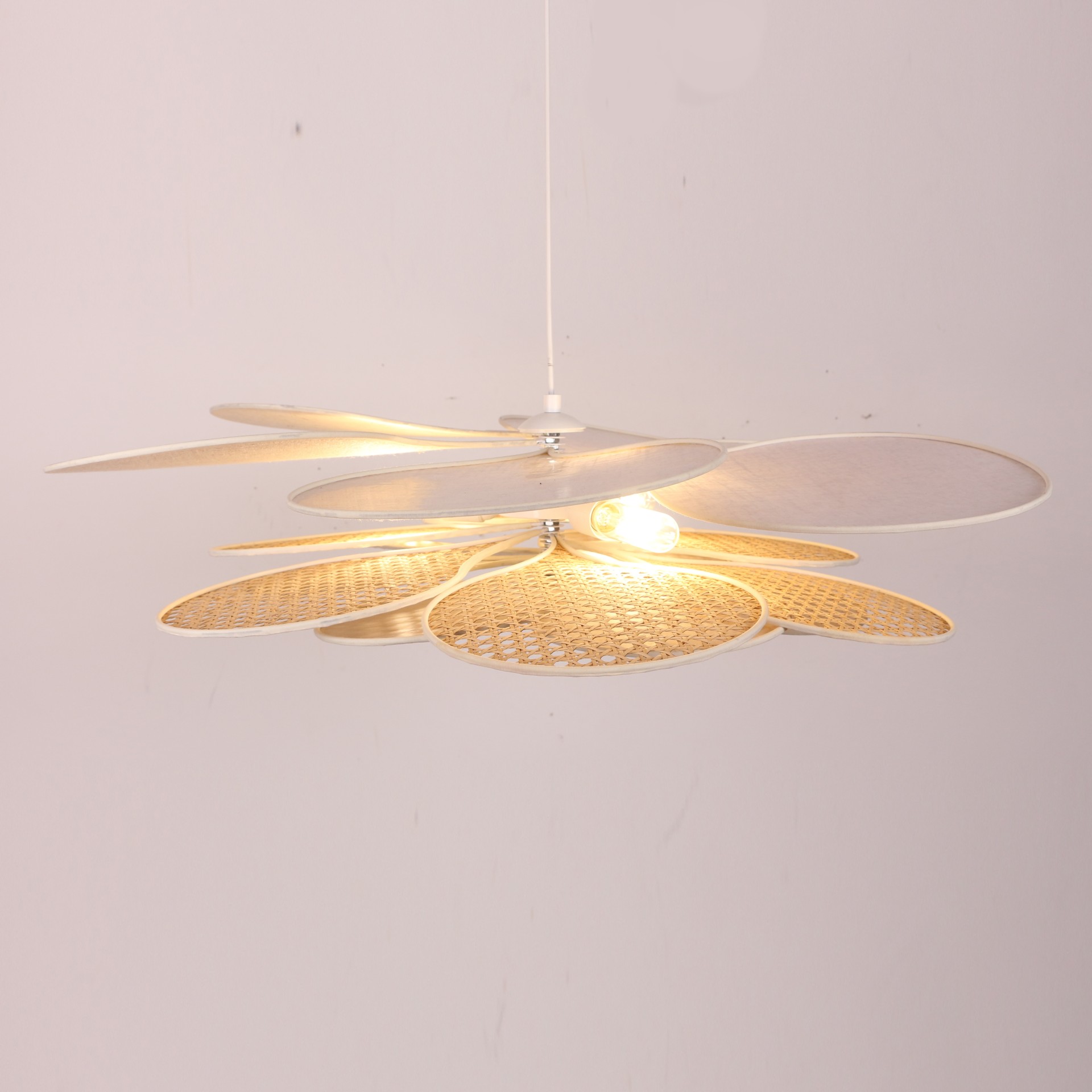 Yeni Papatya Doğal Hazeran ve Kumaş Avize 90 cm (Ampulleri Gövdenin ortasında)
