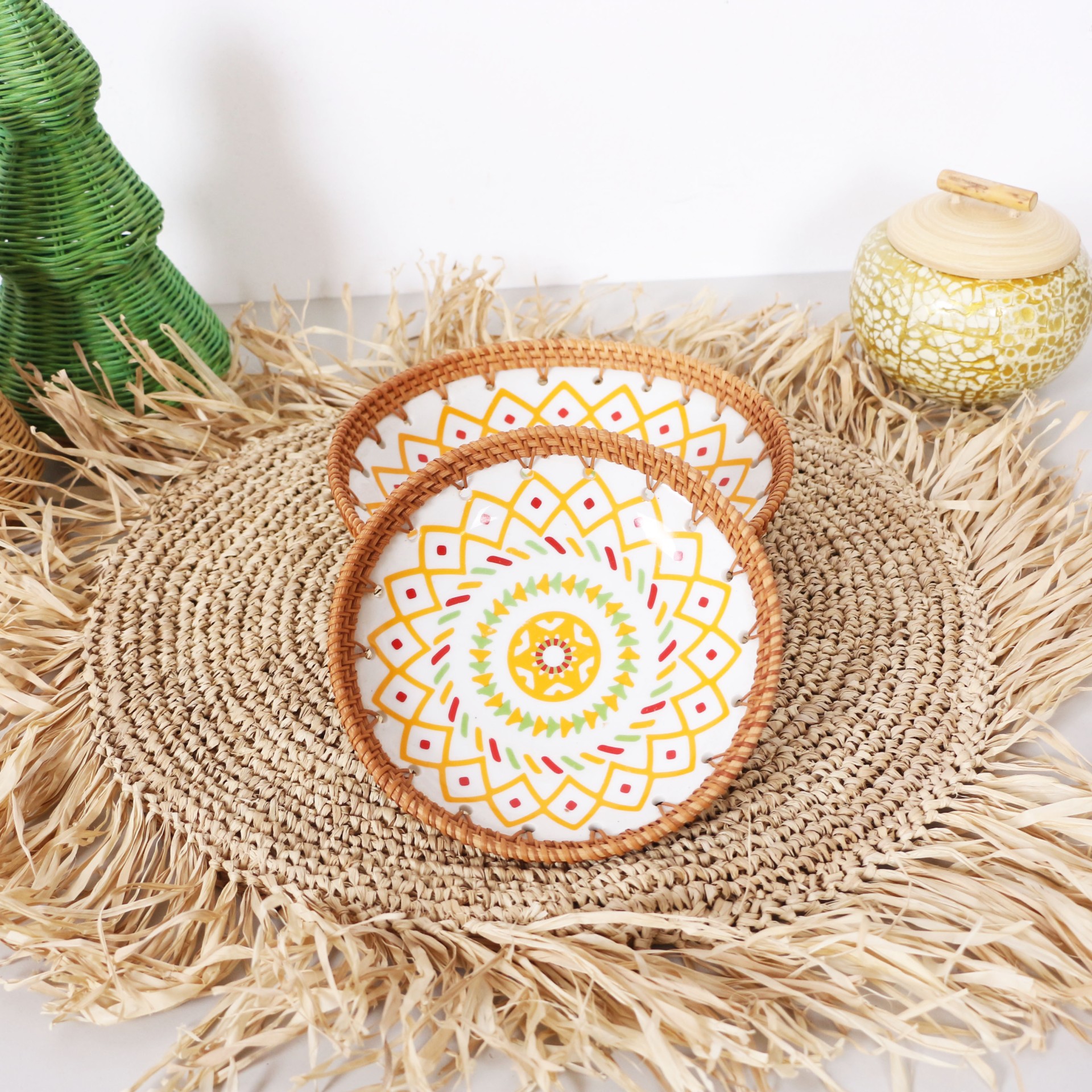 - Ürünümüz el boyaması seramik ve rattan çerçevelidir.