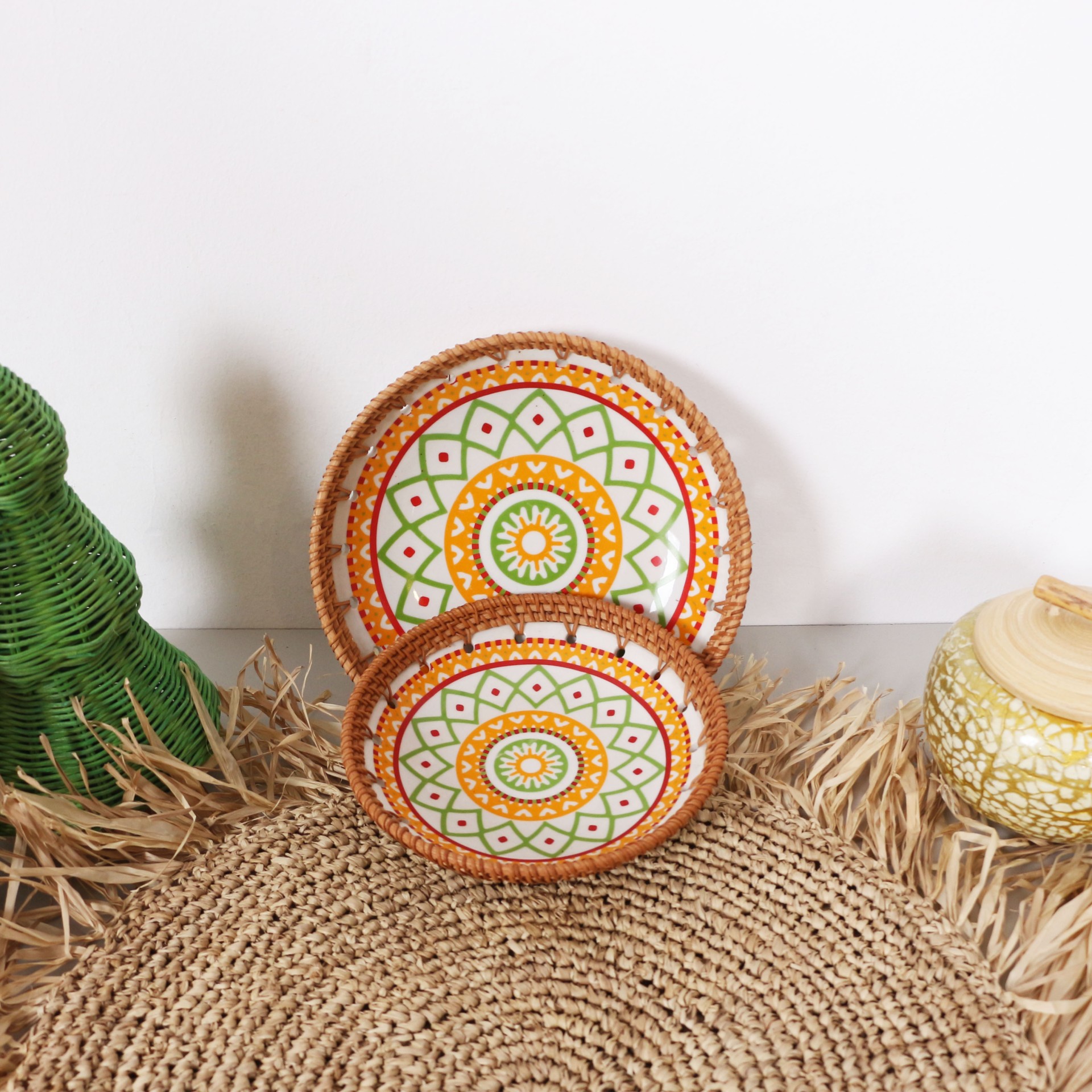 • Ürünümüz el boyaması seramik ve rattan çerçevelidir.